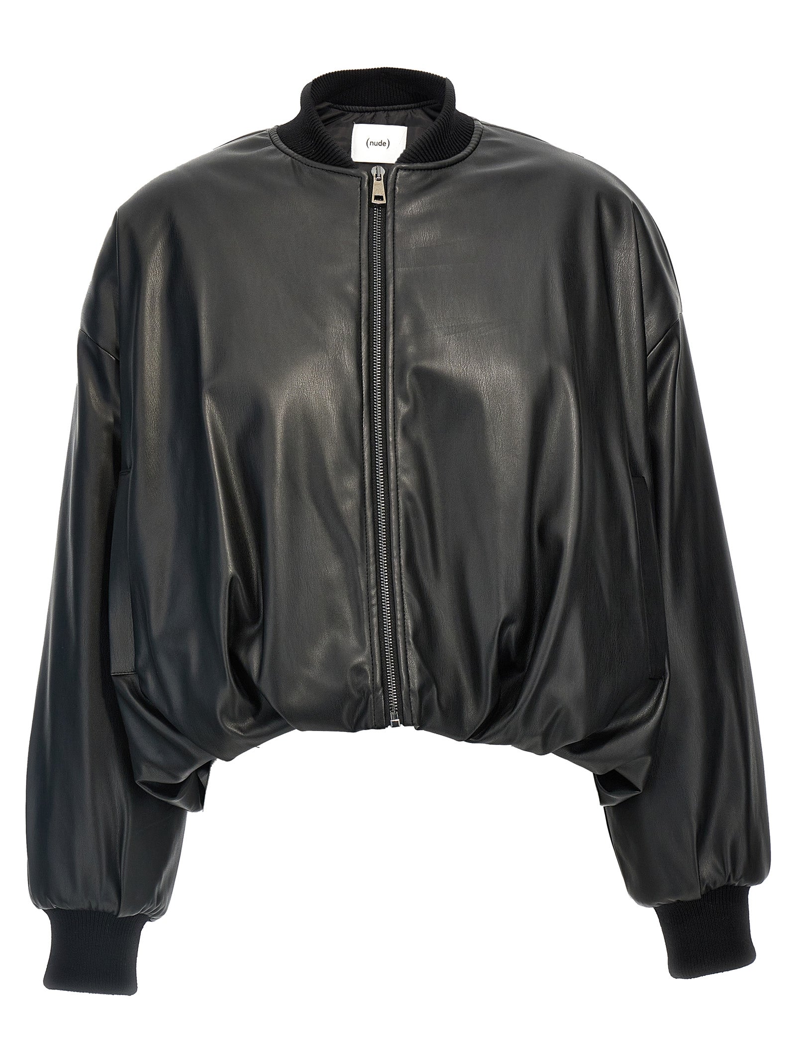 Giacca bomber in pelle finta leggermente imbottita, chiusura a zip, tasche, maniche lunghe con polsini a maglia, elastico sull'orlo.