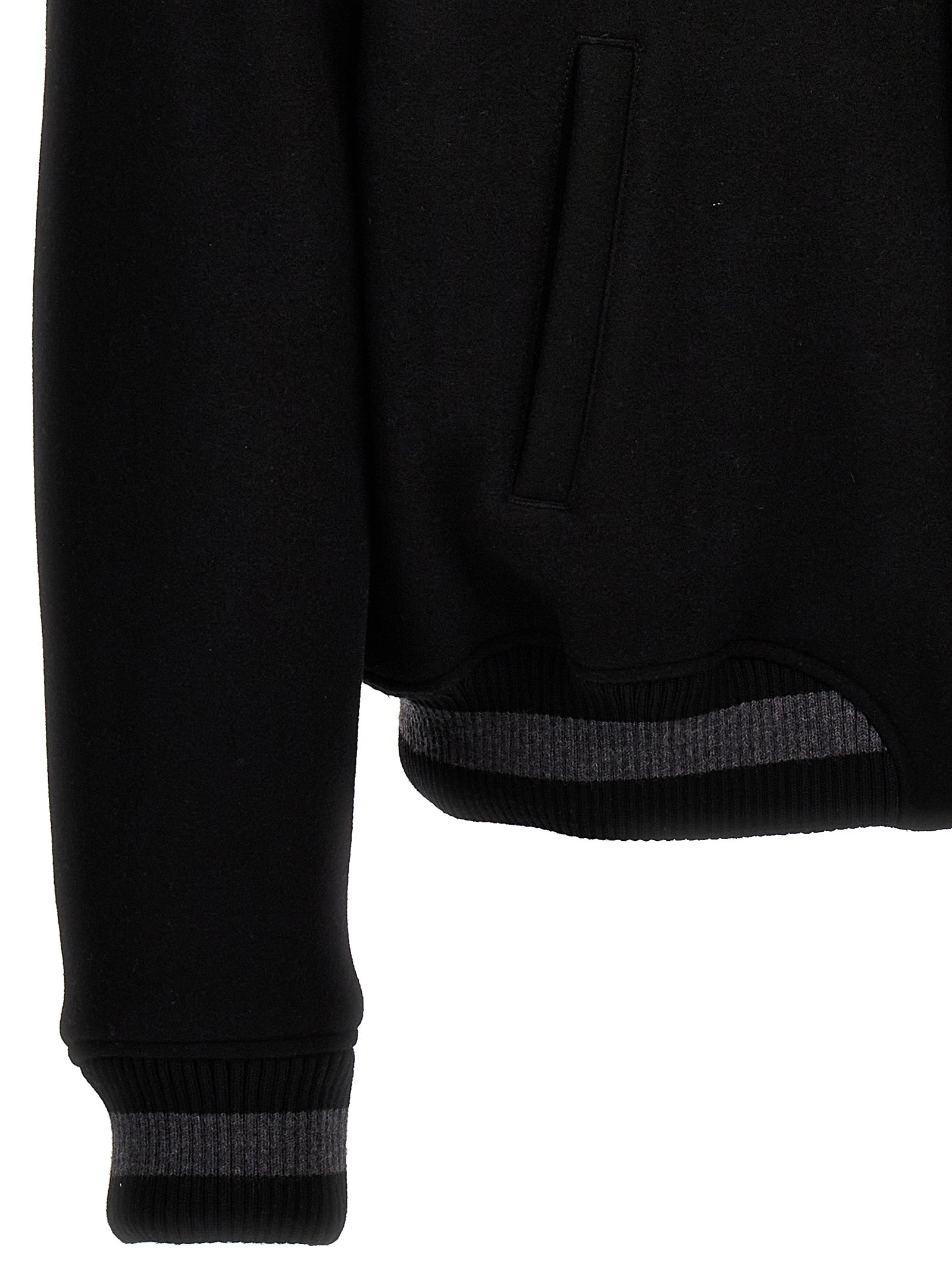 Giacca del bomber di lana 'varsity' con patch e ricami, chiusura a bottone, tasche, maniche lunghe con polsini a maglia.