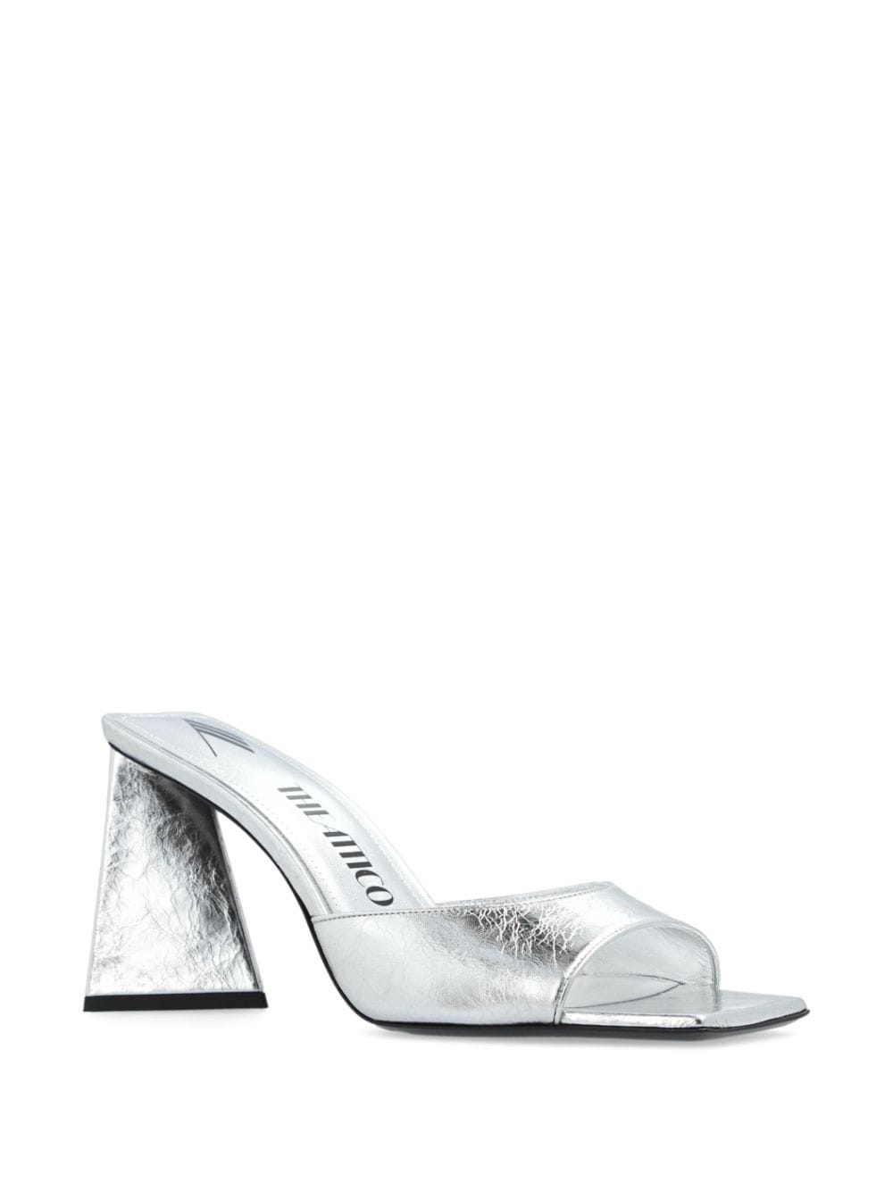 Finitura in pelle di vitello in argento Effetto metallico Effetto metallico quadrato marchiato marchiato in pelle in pelle in pelle slip-on in stile slip-on-slip-on da 85 mm tallone scolpito