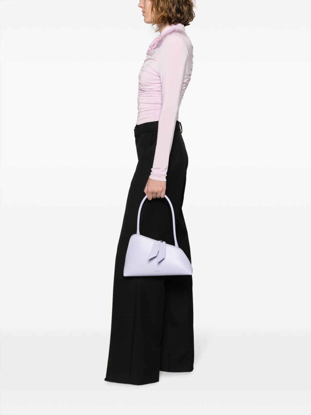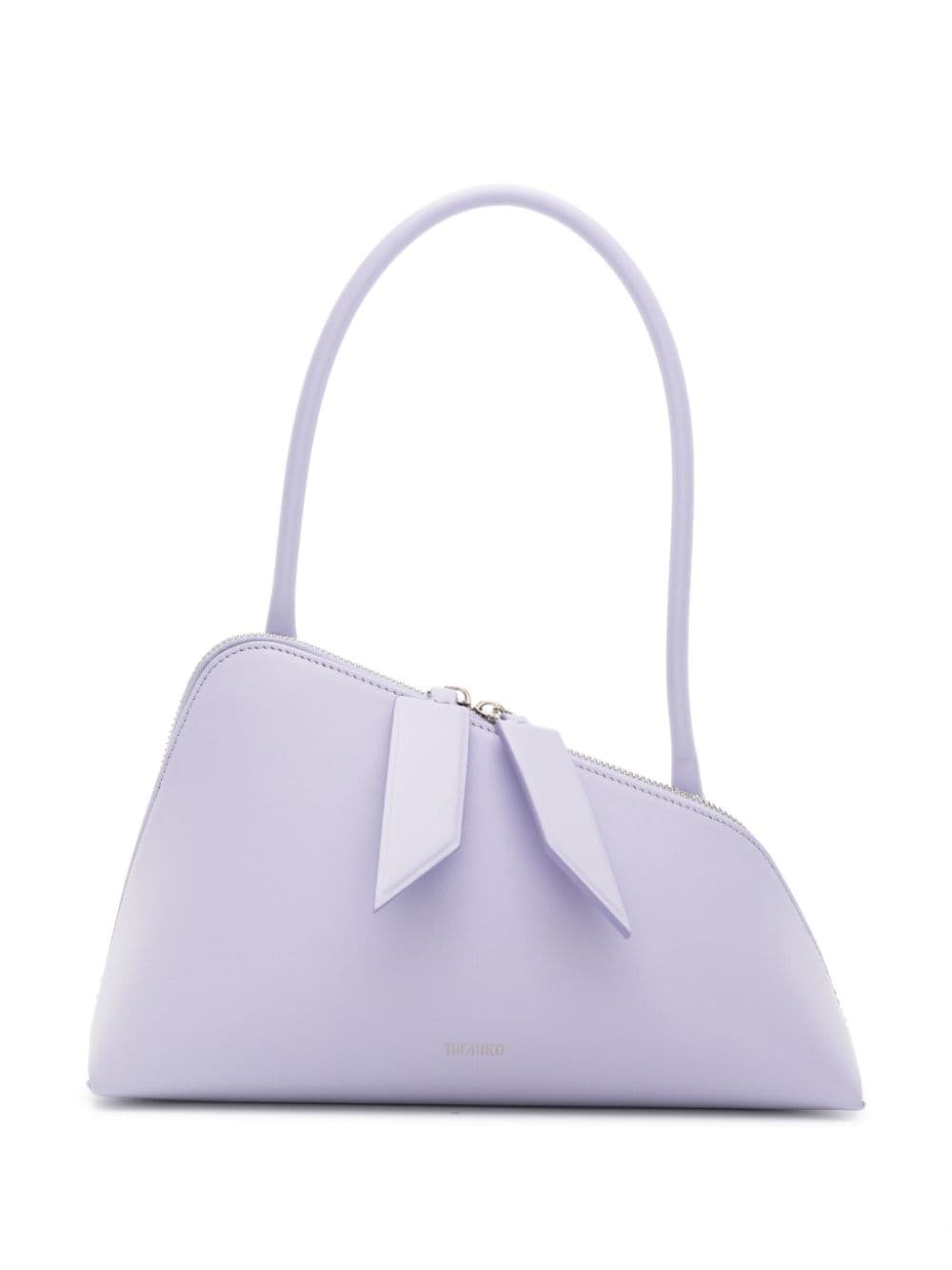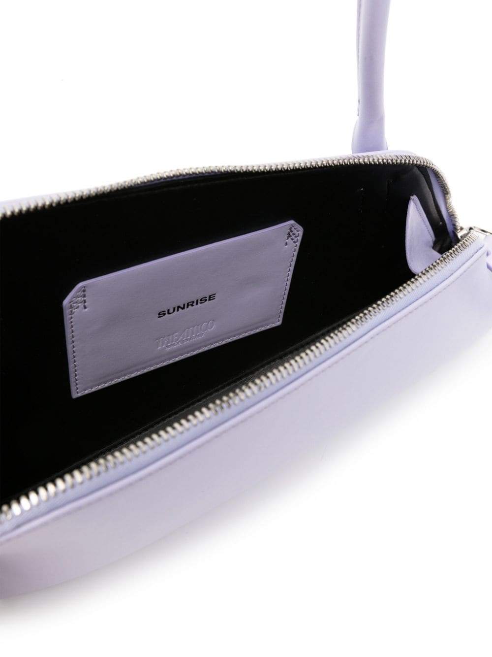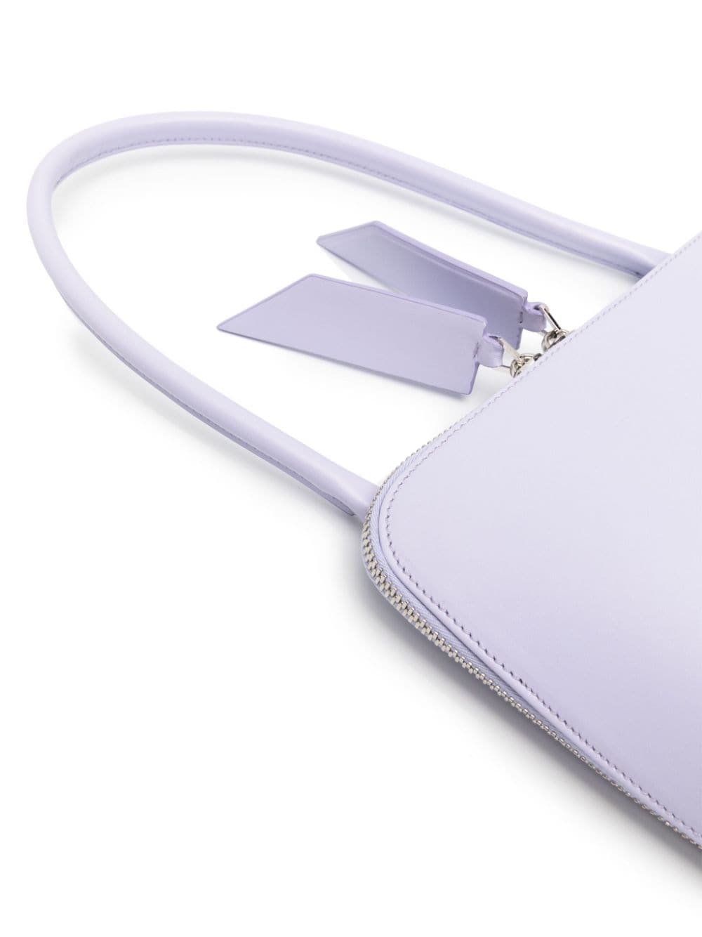 logo tono argento in pelle viola lilla lettere con zip a due vie di fissaggio a due vie sprollata tasca di slittamento interno