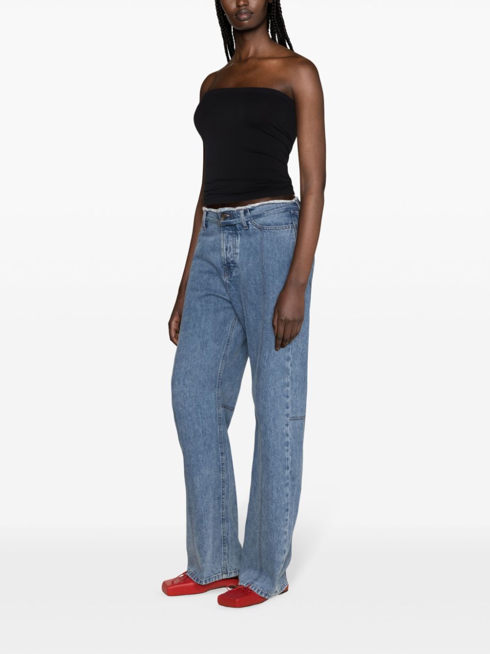Design del tubo in maglieria a coste elasticizzato nero elastico a banda elastica senza spalline.