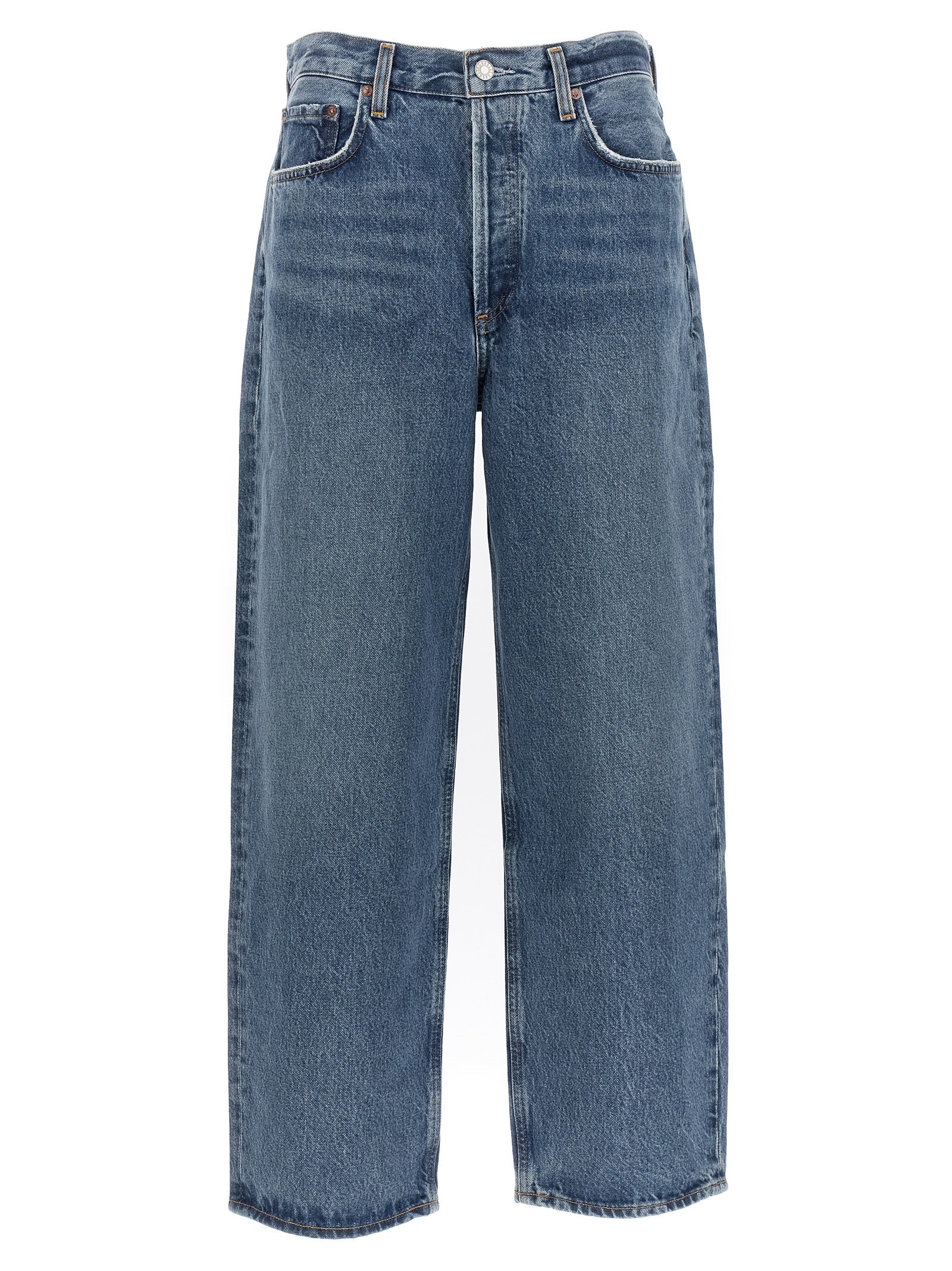 Jeans in denim in cotone 'Dara' con vita media larga, chiusura a bottoni, cinque tasche e dettagli di effetto usato.