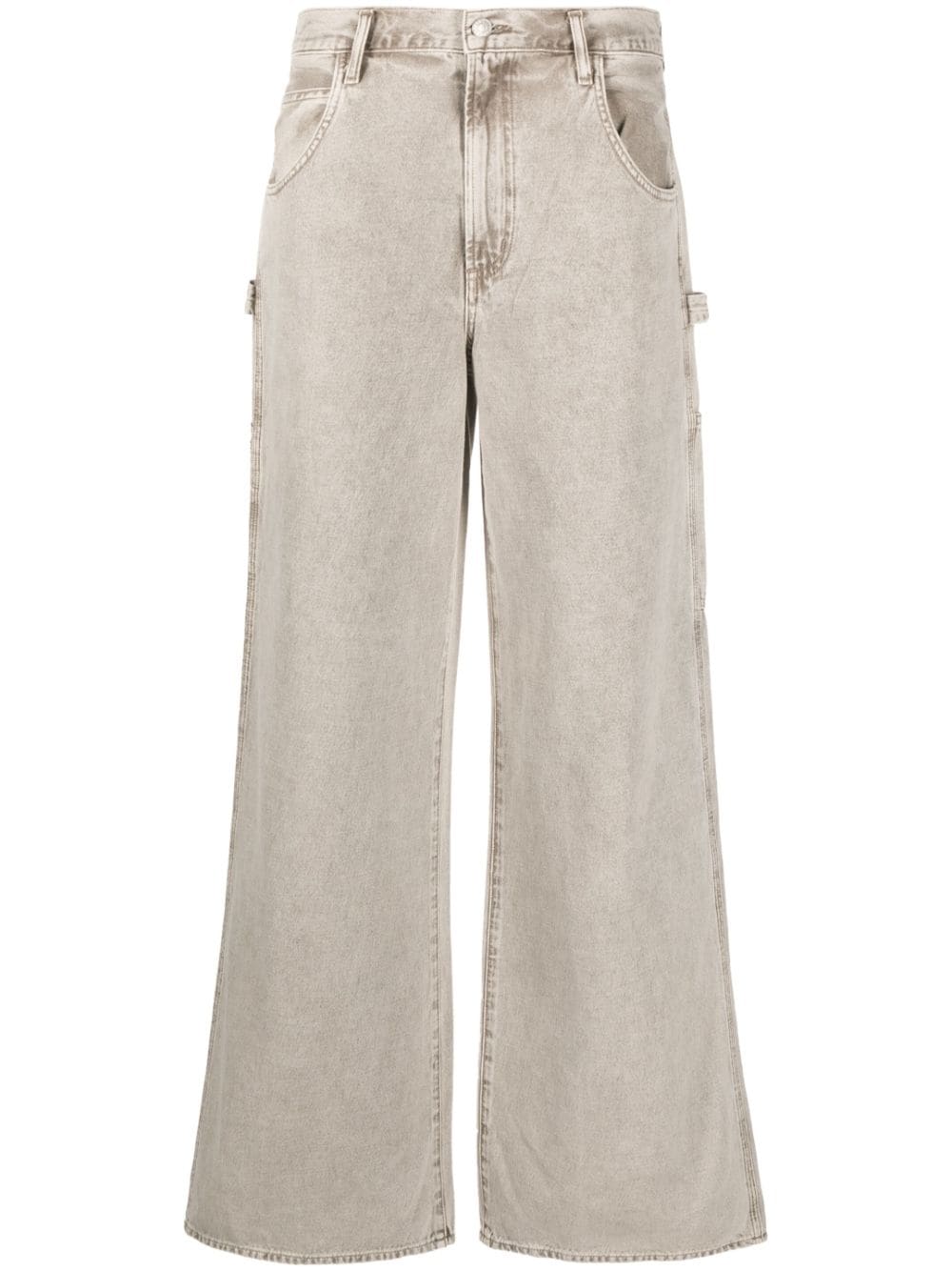 Jeans a gamba a gamba MAGDA di Agolde con grigio chiaro, cotone organico, gamba larga, bassa risalita, anelli della cinghia, bottone anteriore e fissaggio con zip, due tasche classiche e due tasche di carico laterale. Questo articolo è realizzato con almeno il 50% di materiali organici. Scopri di più su ciò che rende consapevole di un prodotto sulla nostra pagina dei criteri coscienti.