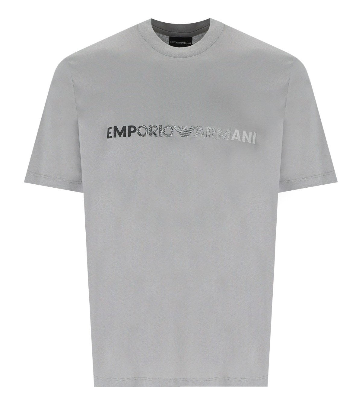 T-shirt Emporio Armani realizzata in maglia di cotone grigio, decorata con un logo ricamato a gradiente sul davanti. Adattamento regolare. Composizione: cotone 100%.