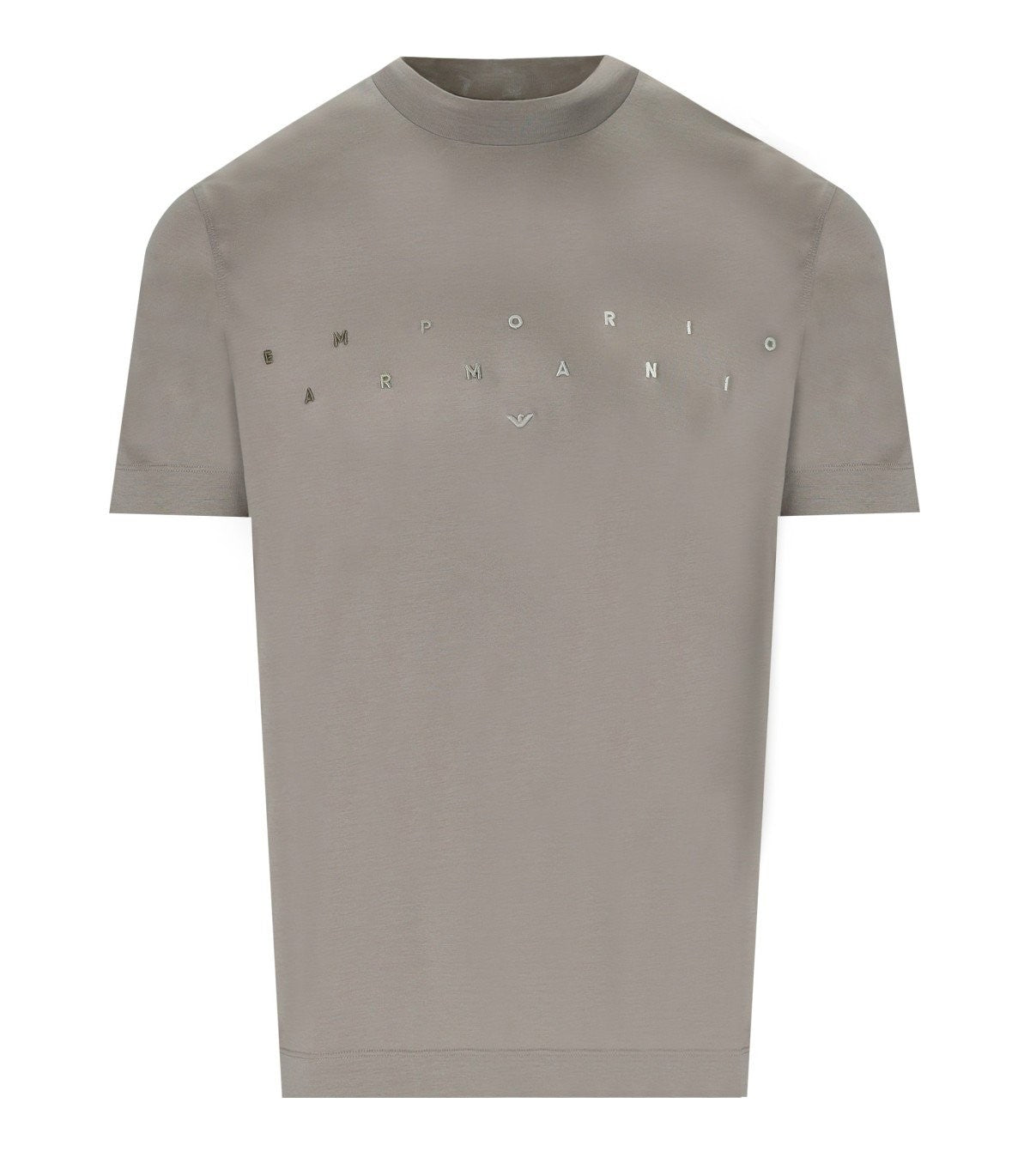 T-shirt Emporio Armani fatta di una miscela di cotone e Lyocell in toni di beige, con un logo ricamato con un effetto degrado sul davanti. Adattamento regolare. Composizione: 70% di Lyocell, 30% di cotone.
