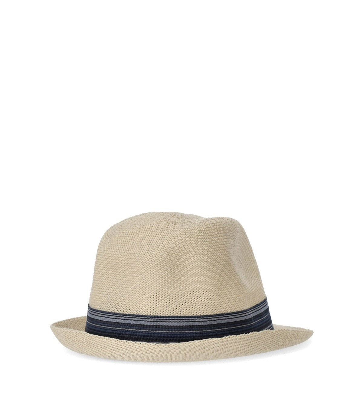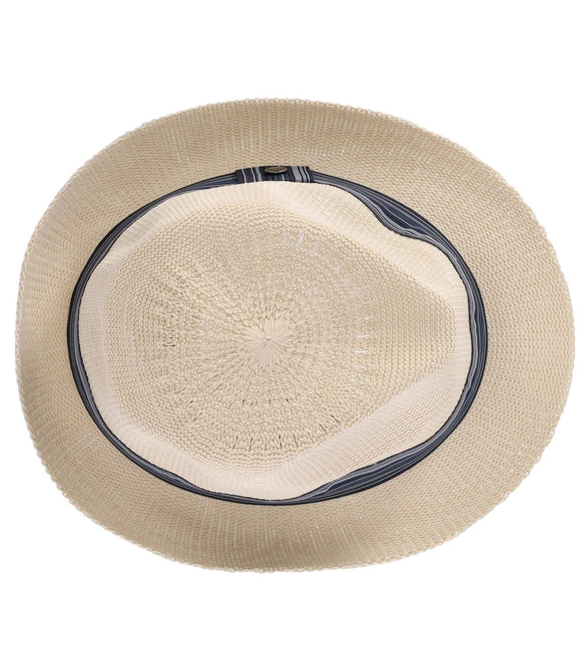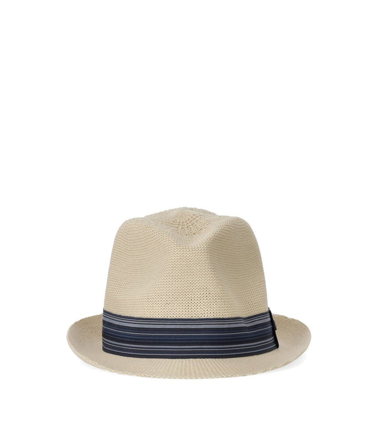 Barbour Belford Trilby Cappello realizzato in tessuto in poliestere Ecru, con una fascia a strisce in sfumature di blu. Misurare M: 57 cm. Misurare L: 59 cm. Misurare XL: 61 cm. Composizione: 100% poliestere.