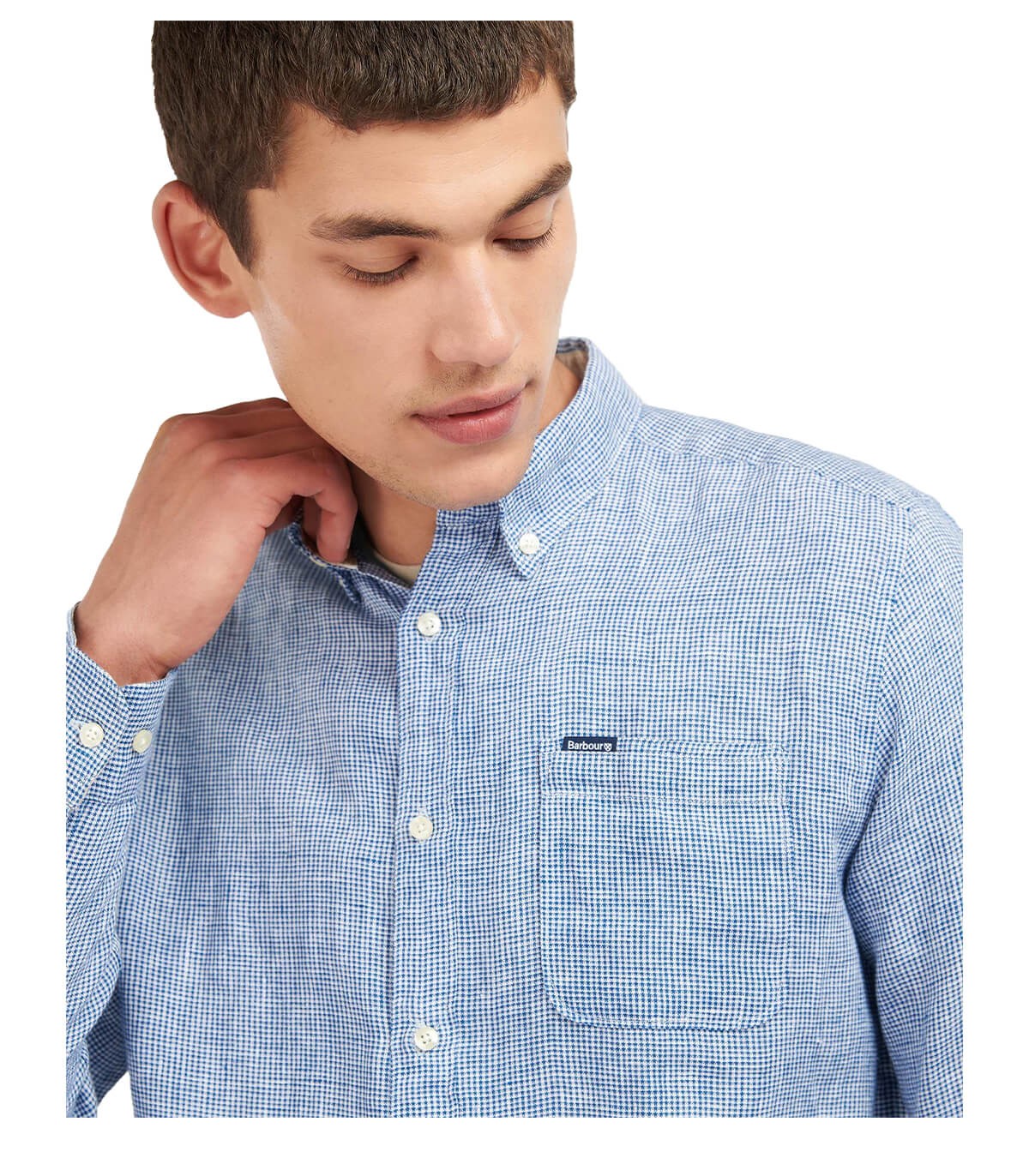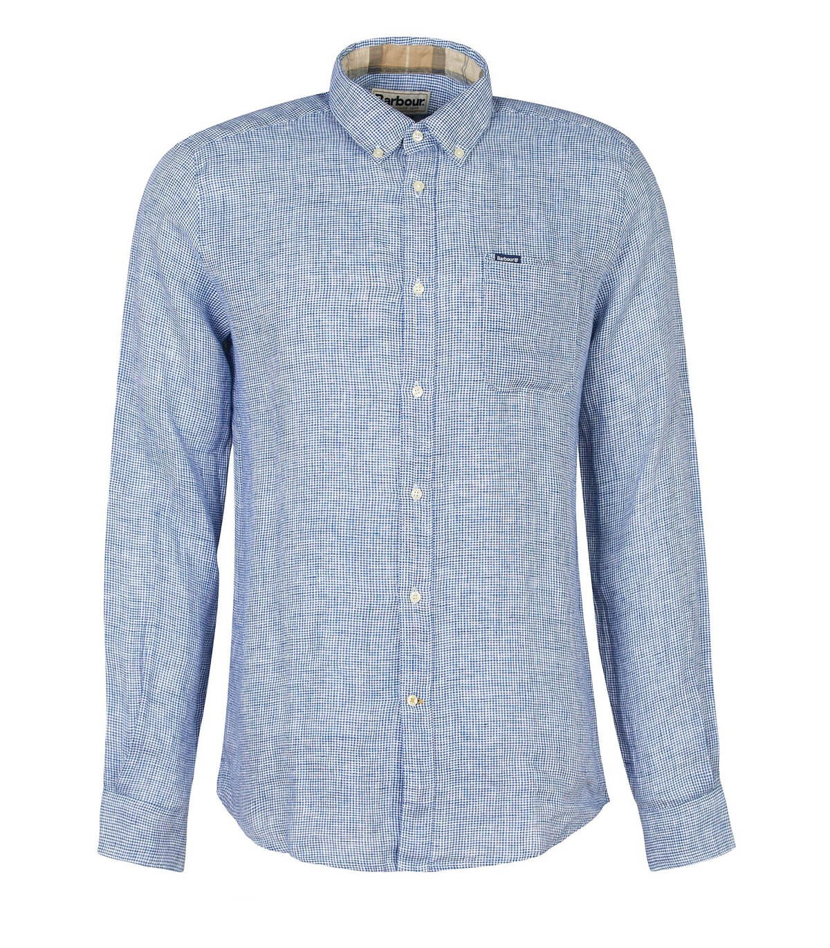 Shirt Linton di Barbour, con un taglio su misura, realizzato in lino con un modello di micro Houndshooth in sfumature di blu navy e bianco. Tasca della patch torace con dettaglio del logo, polsini regolabili e fissaggio dei pulsanti. Composizione: lino al 100%.