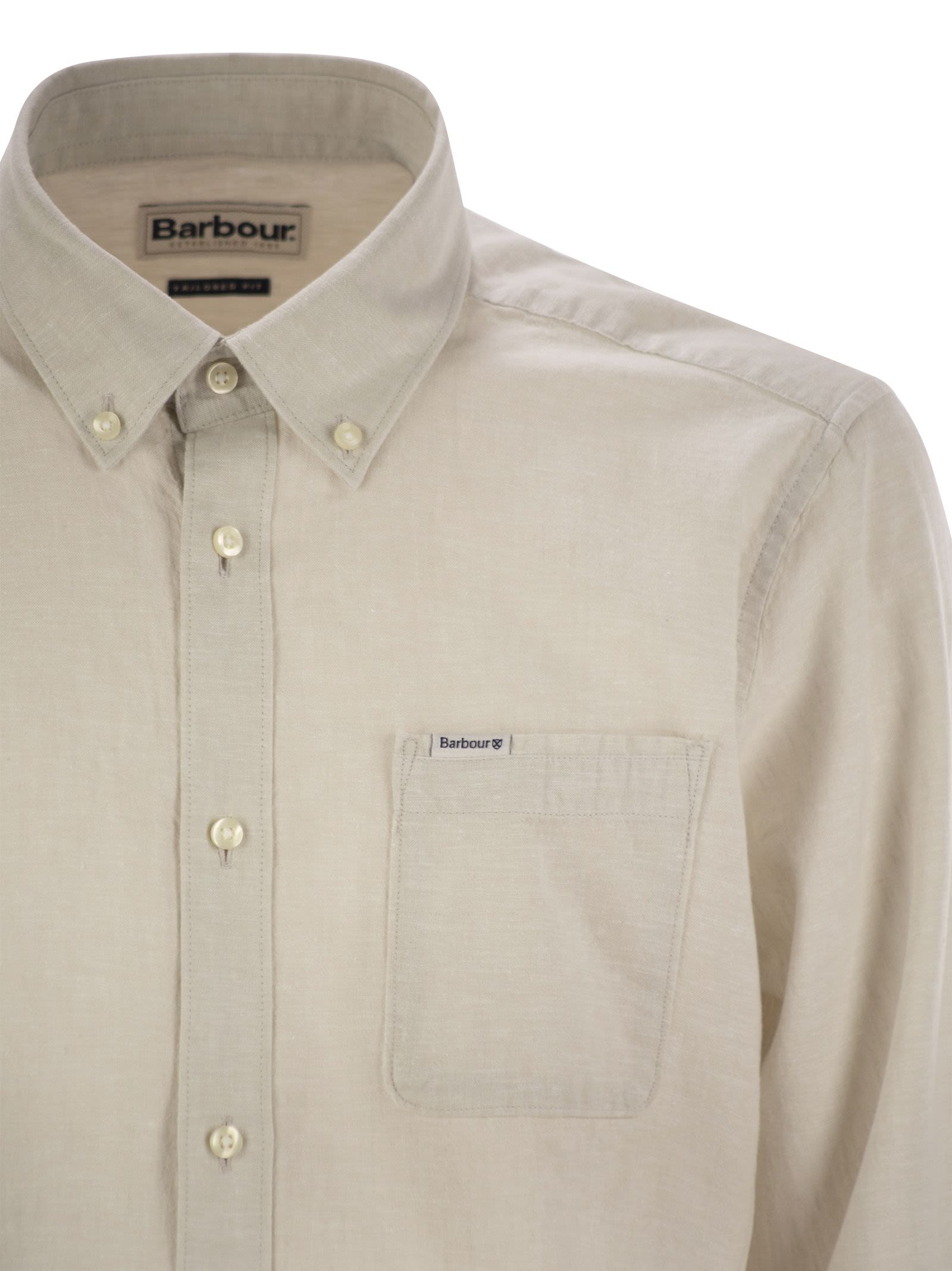Tackle the mid-seasons with ease with Barbour's Nelson long-sleeved shirt. Made from a lightweight linen and cotton blend, it's perfect to wear on its own or under jumpers or waistcoats on cooler days. - On the chest pocket, top left: Barbour logo label and shield - Botton-Down - Tailored fit DESIGNER ID: MSH5090 MSH BE12