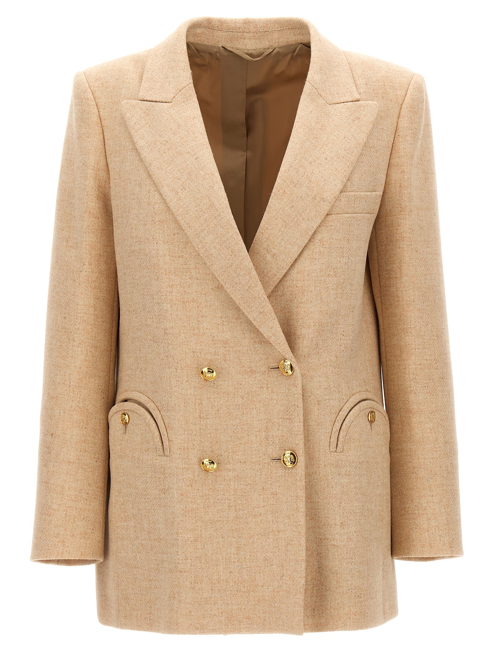Blazer di lana a doppio petto "All in Overly" con chiusura a bottone, tasche, spalle strutturate, maniche lunghe, sfiato posteriore.
