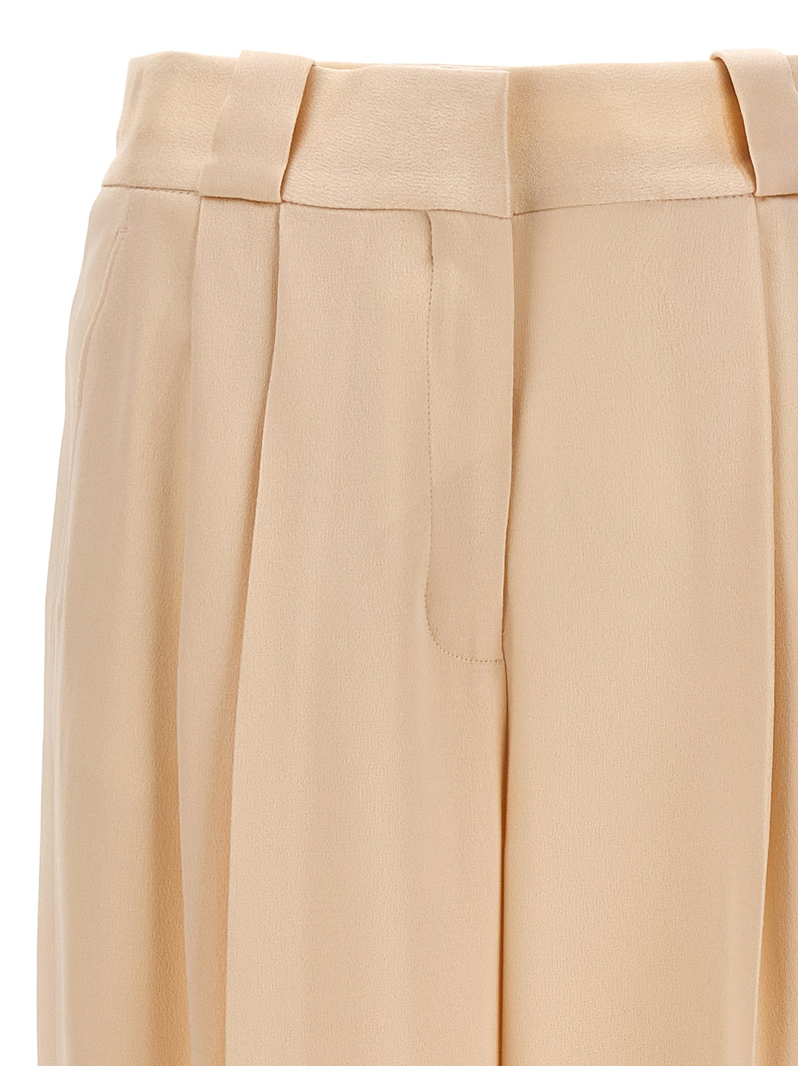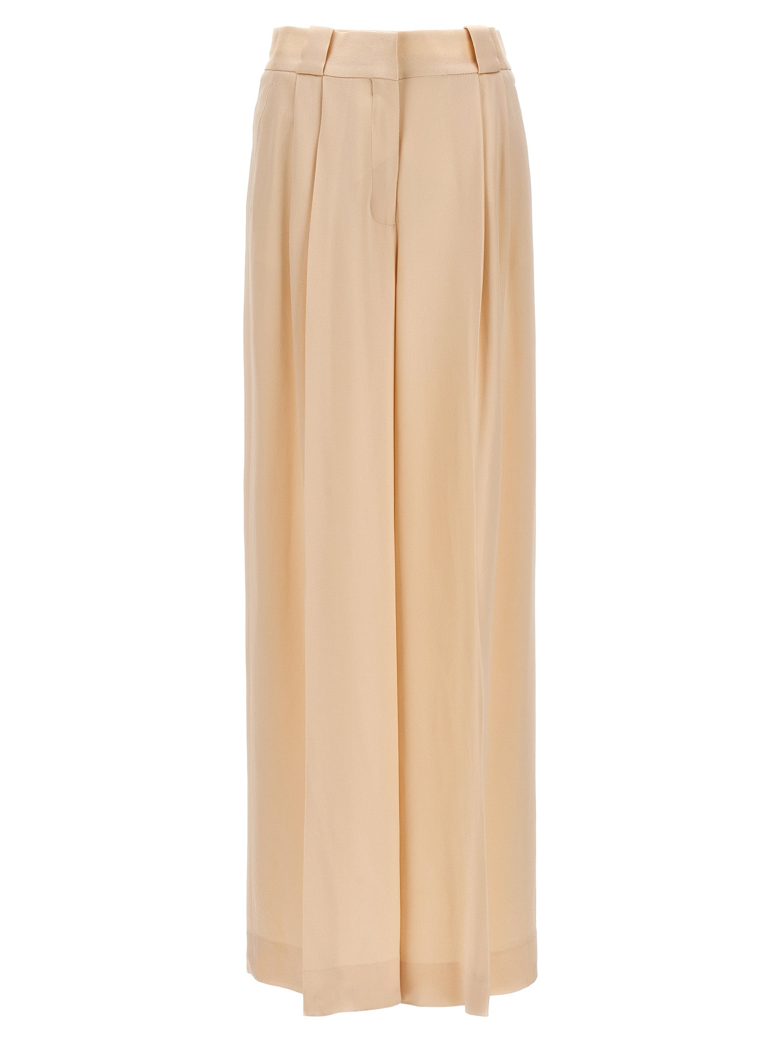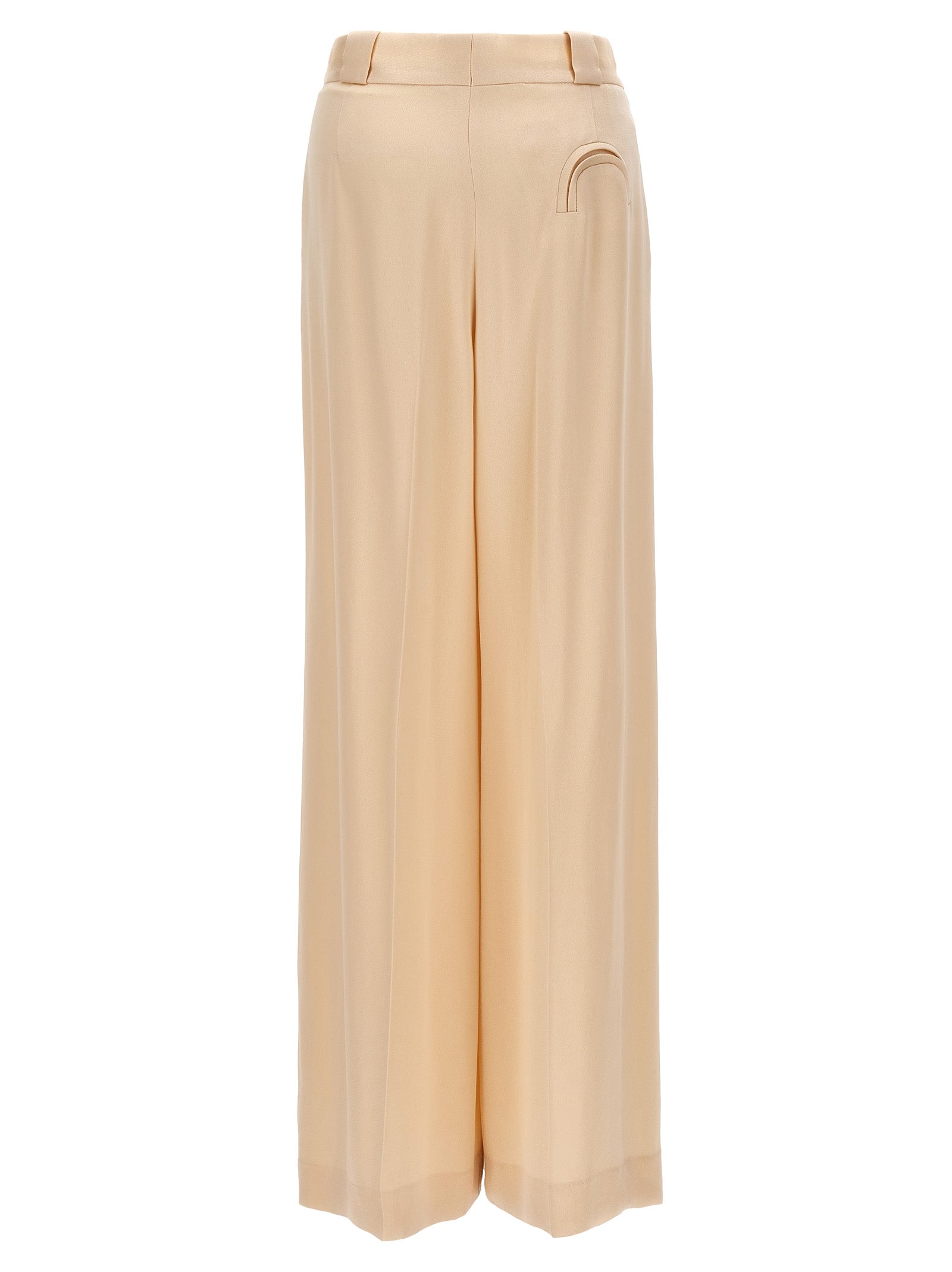 HUSI PANTS INCONTRO DI SATILE DI NAVALIS Avorio, vita alta, gamba larga, piega allungata anteriore, zip e chiusura a gancio nascosta, tasca posteriore.