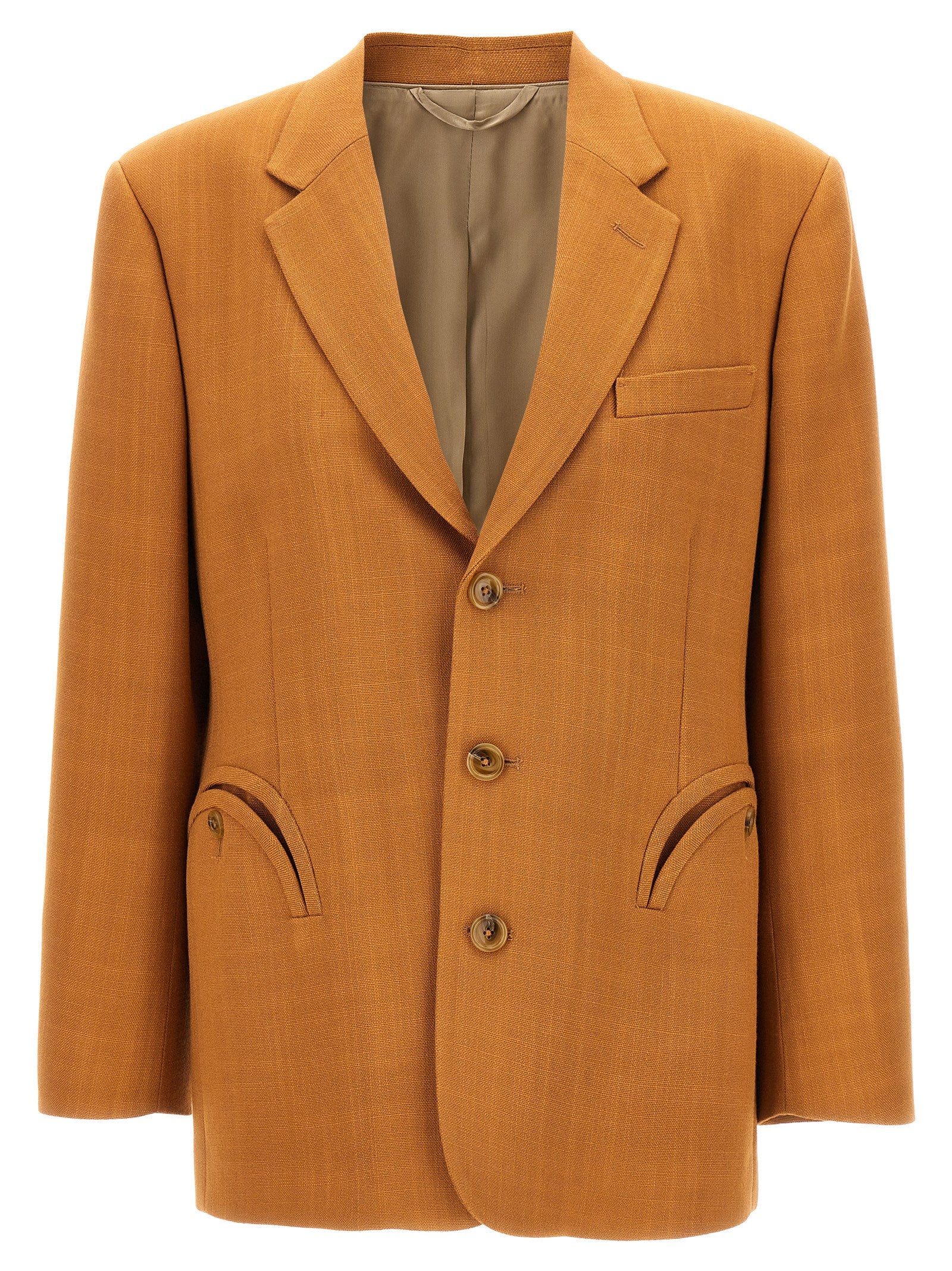 Blazer viscosa a petto singolo 'Peanut Nana' con chiusura a bottoni, tasche, maniche lunghe, sfiato posteriore.