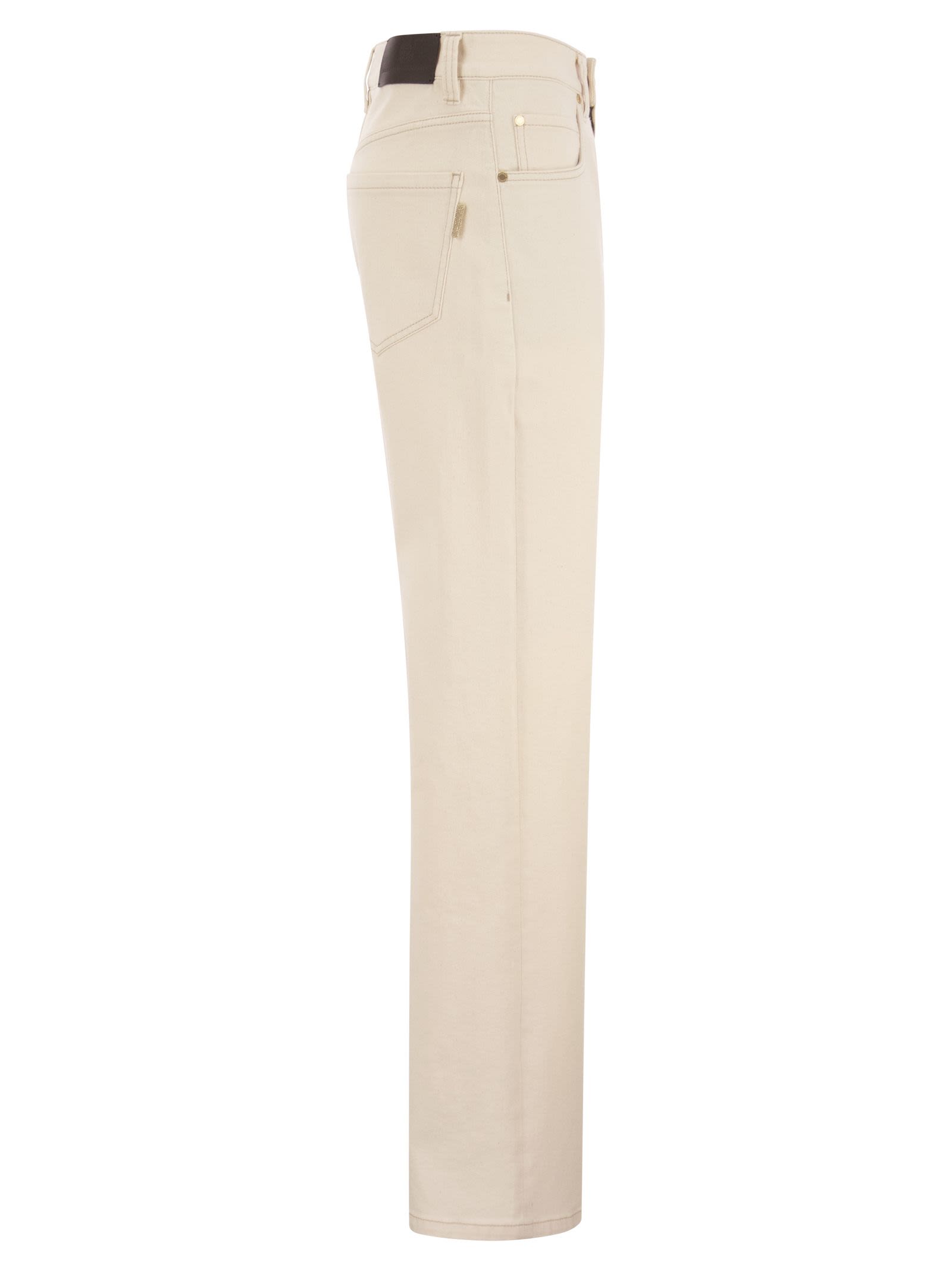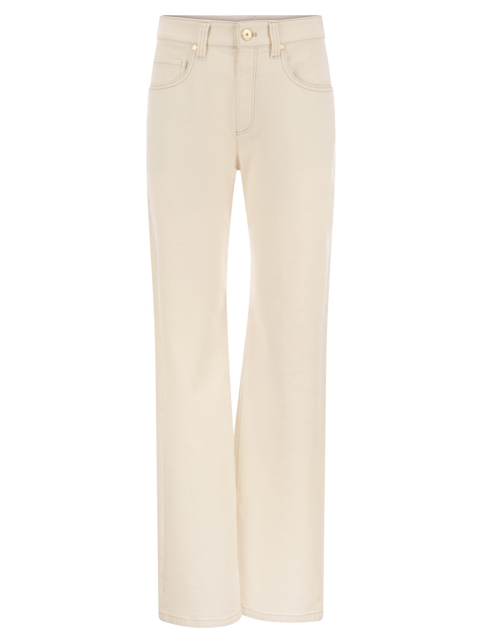 Brunello Cucinelli pantaloni sciolti in denim comfort tinto di abbigliamento con linguetta luccicante