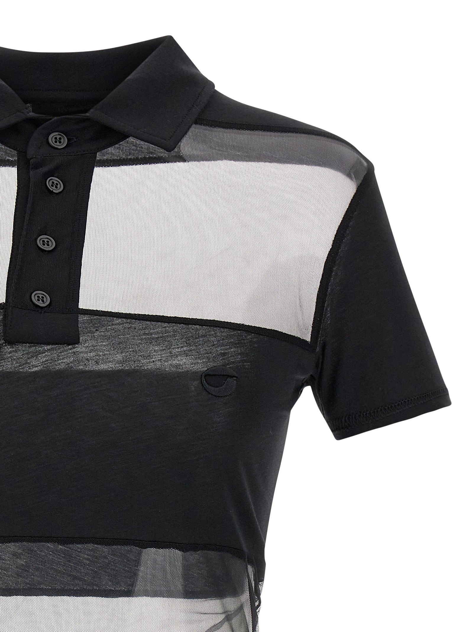 Top semitrasparente con colletto Polo e struttura del pannello, scollo a V, maniche corte.