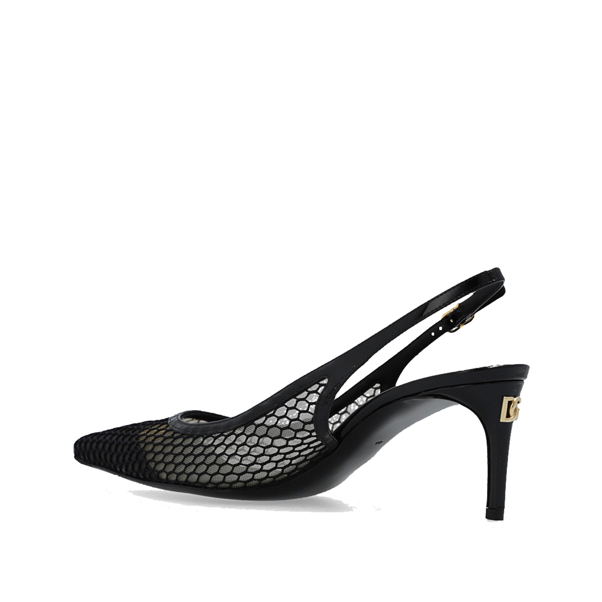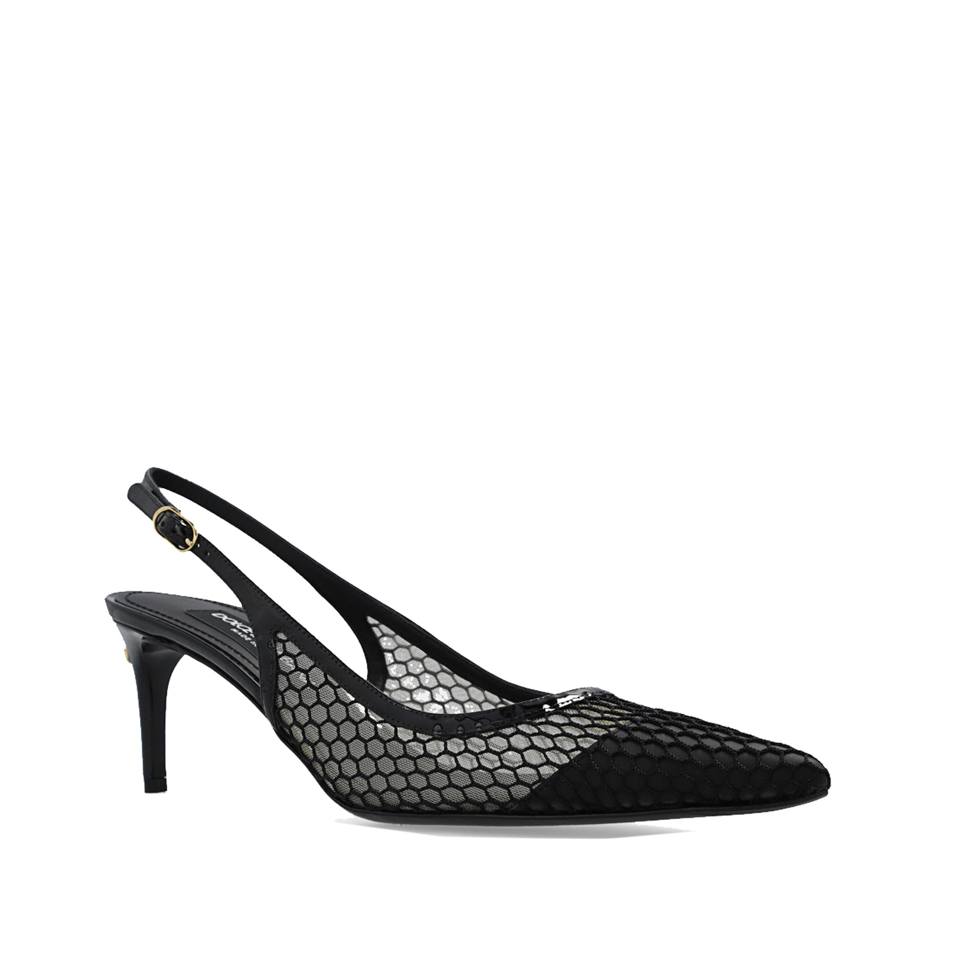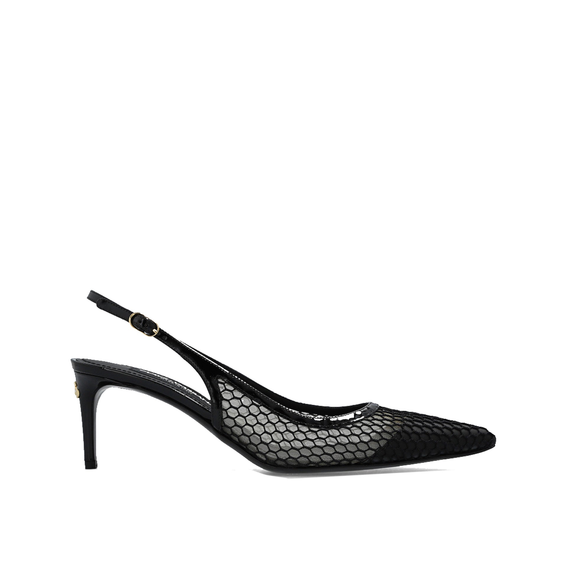 - Composizione: 100% Poliammide - Interno: Poliammide - Soletta: Pelle - Suola: Pelle - Punta appuntita - Dettagli in pelle - Semitrasparente - Chiusura con fibbia regolabile alla caviglia - Logo posteriore in rilievo color oro - Made in Italy -