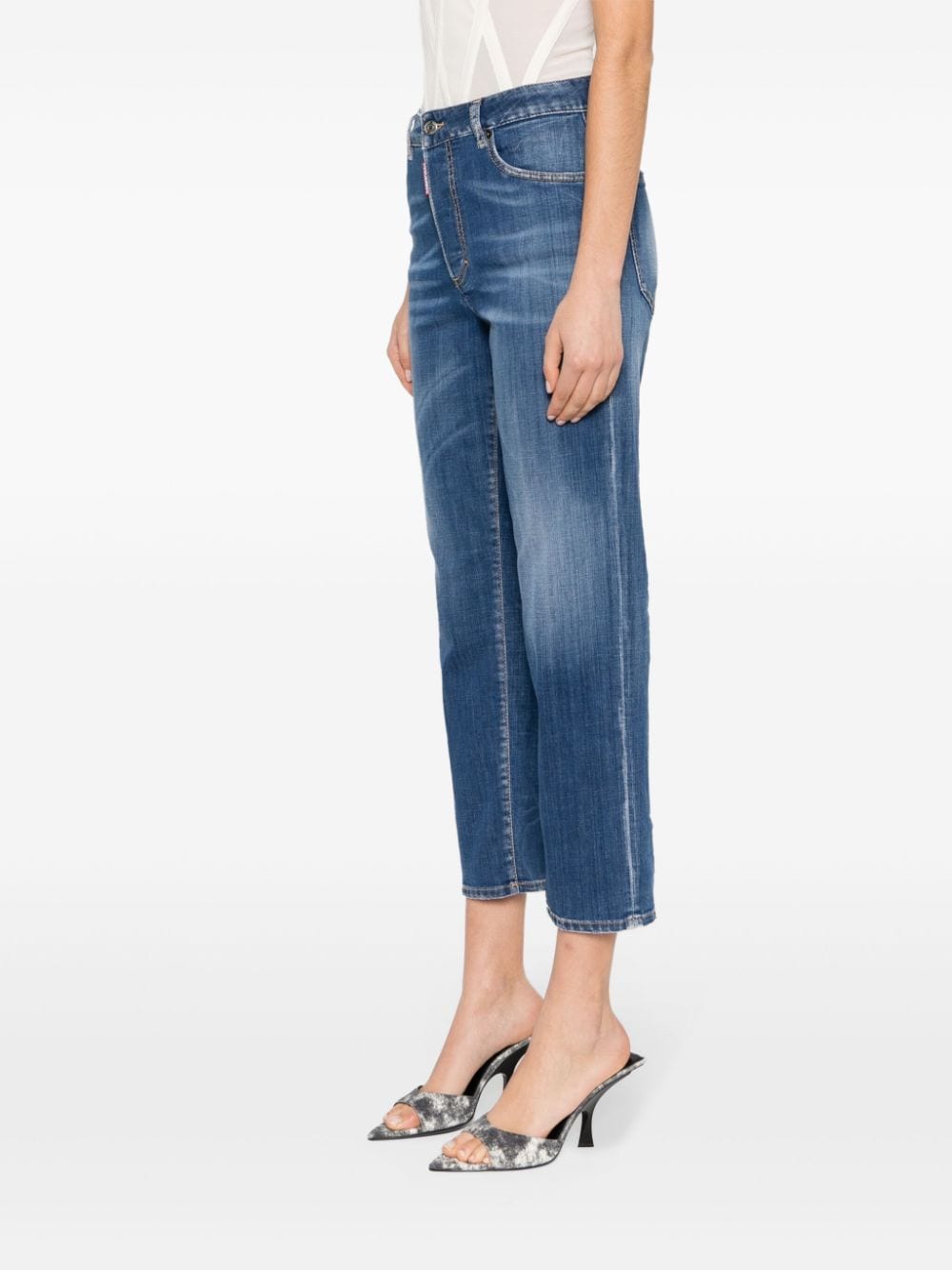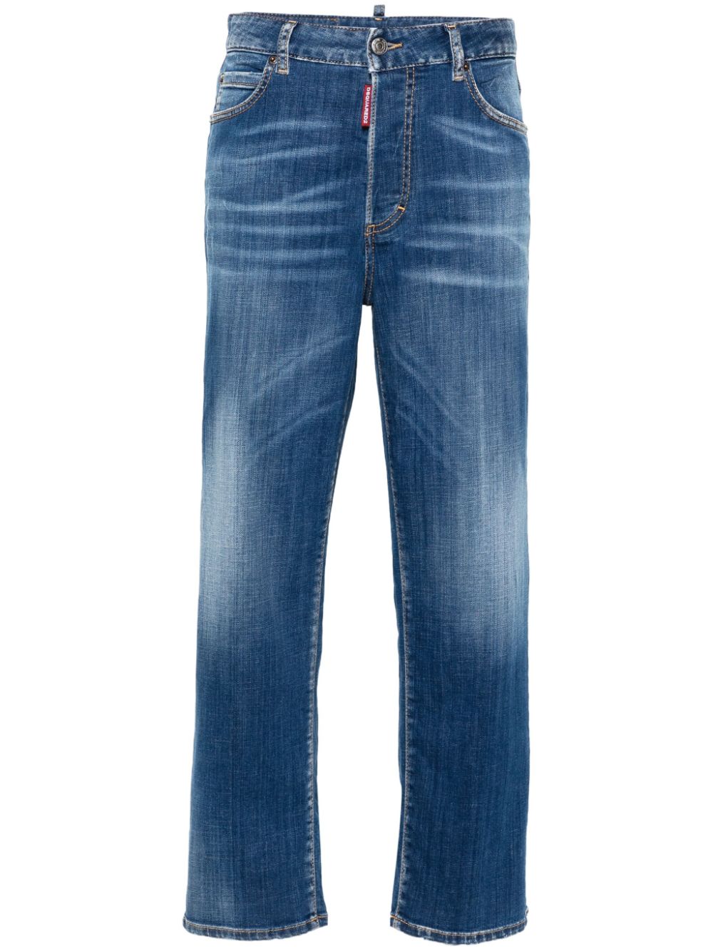 Logo Appliqué in denim in denim in Indigo Blue-Cotton ai passanti della cinghia posteriore in vita classico Design a cinque tasche Slim Cut