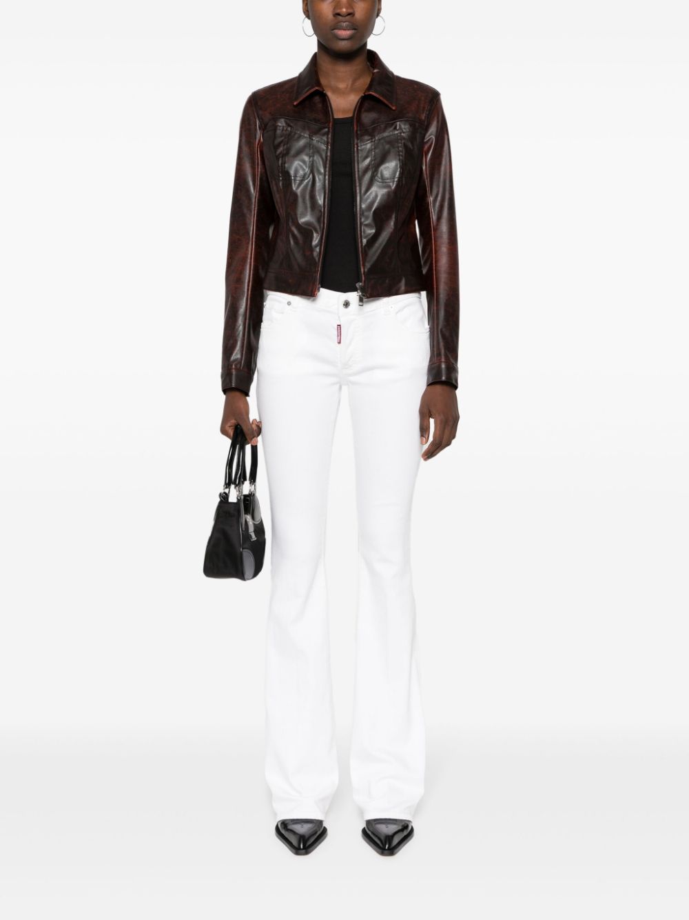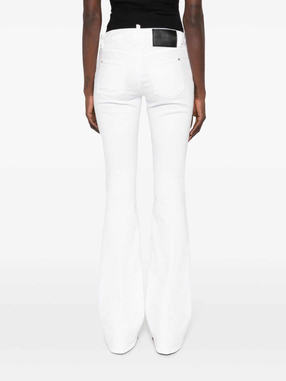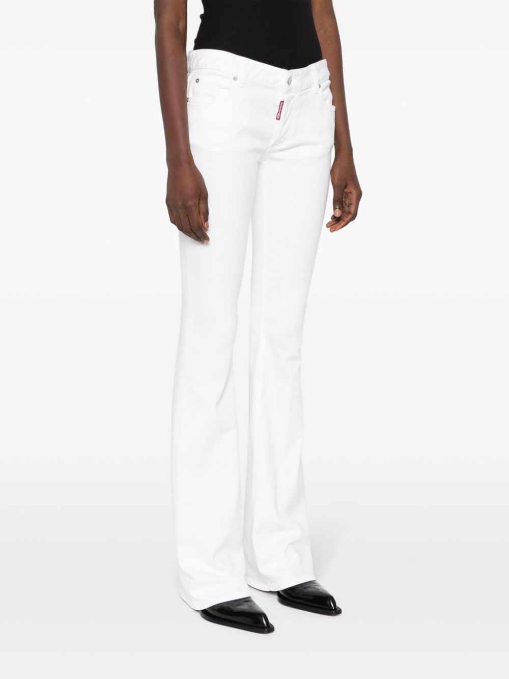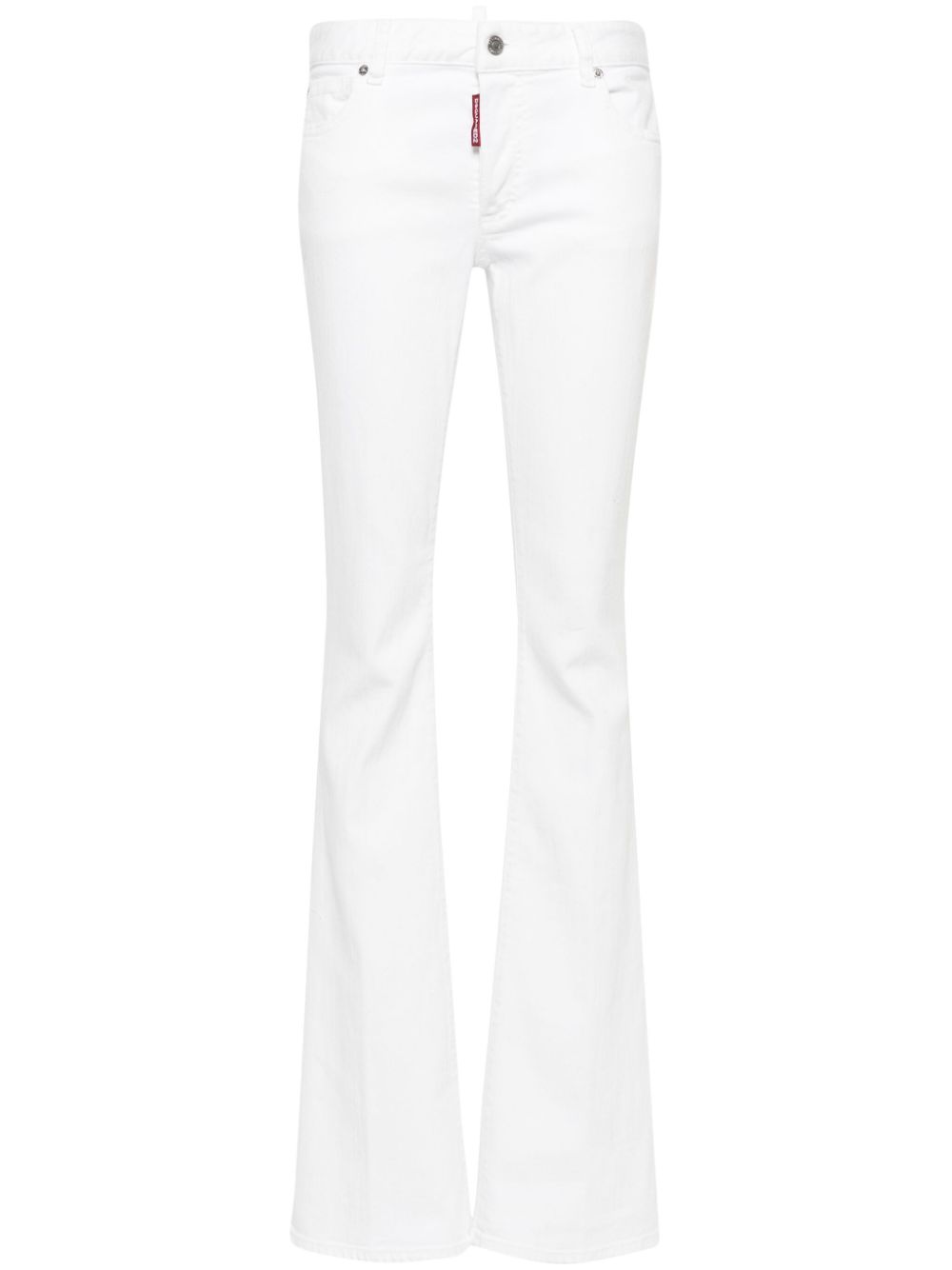 White Stretch-Cotton Denim Stitching Tonal Stitching Tago hardware tono argento in argento Tag nella patch del logo del volo sul pulsante posteriore Flaia della cinghia di fissaggio Flaio Classico Classico Five tasche Dolled Orno svasato