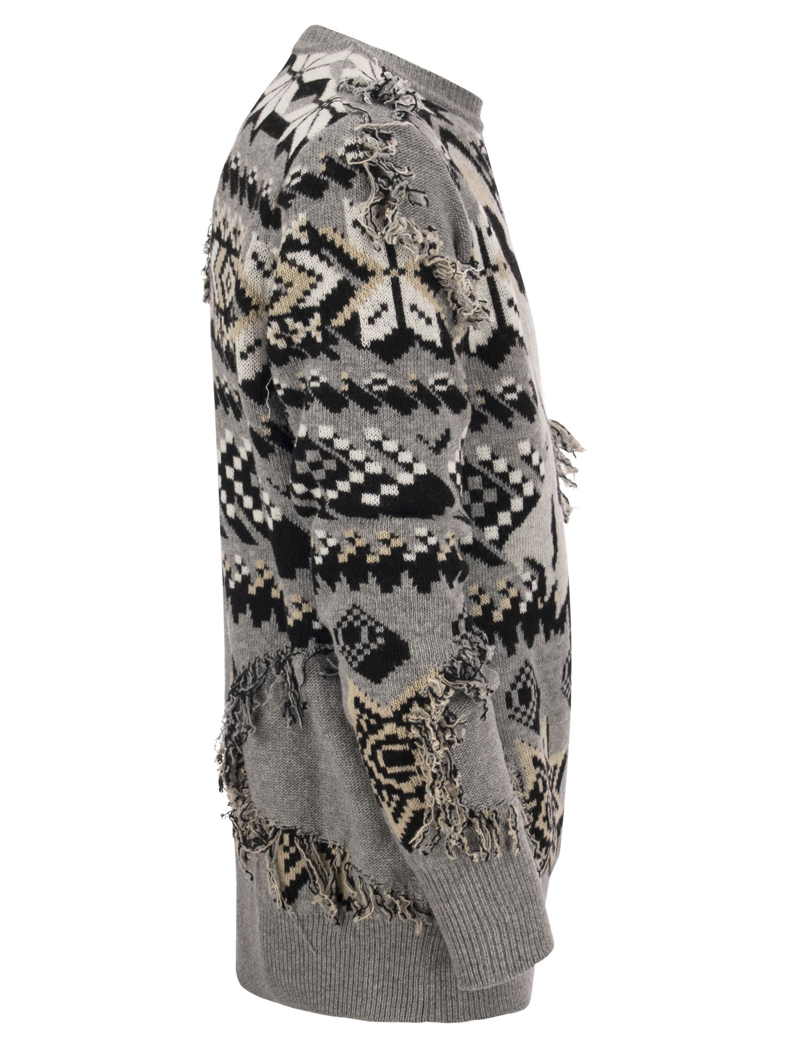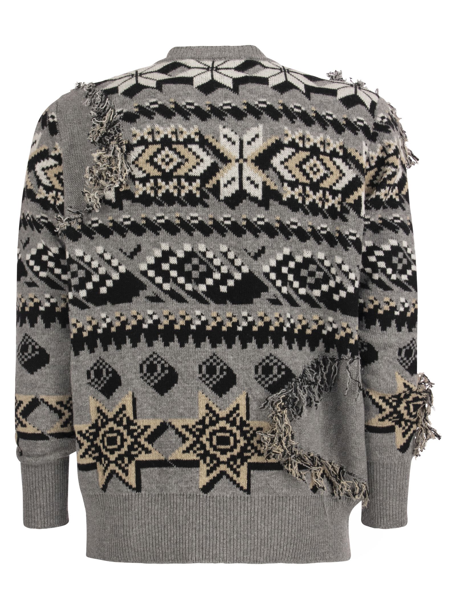 Wool Jacquard Jumper dagli uomini Etro 's Collezione di sfilate di moda inverno all'autunno 2022, abbellita con ricami di intarsia di lupo, frange e motivi geometrici dell'effetto pixel. - Adattamento regolare - ID progettista con il collo dell'equipaggio: 1M910 9388 0003
