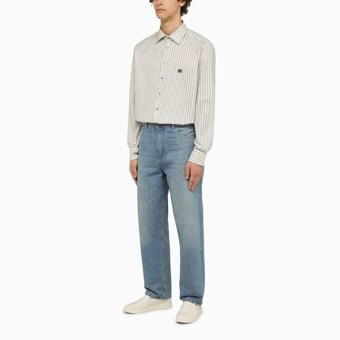 Camicia a maniche lunghe etro bianco/verde a strisce