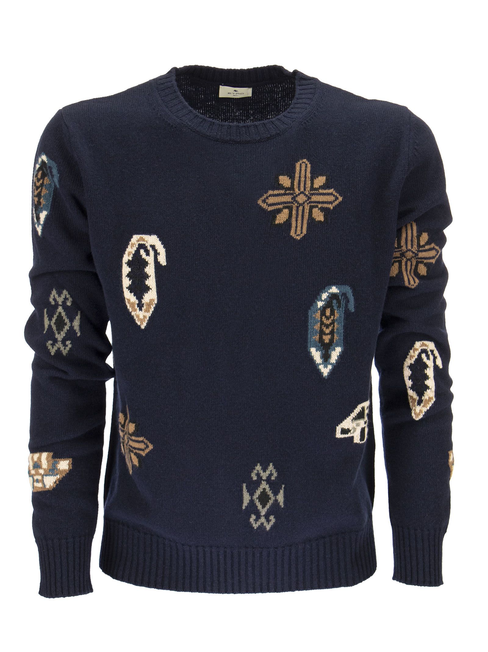 Lana e jumper di cotone, con motivi paisley e disegni geometrici intarsiati. - Fit regolare - ID progettista con il collo dell'equipaggio: 1M920 9166 200