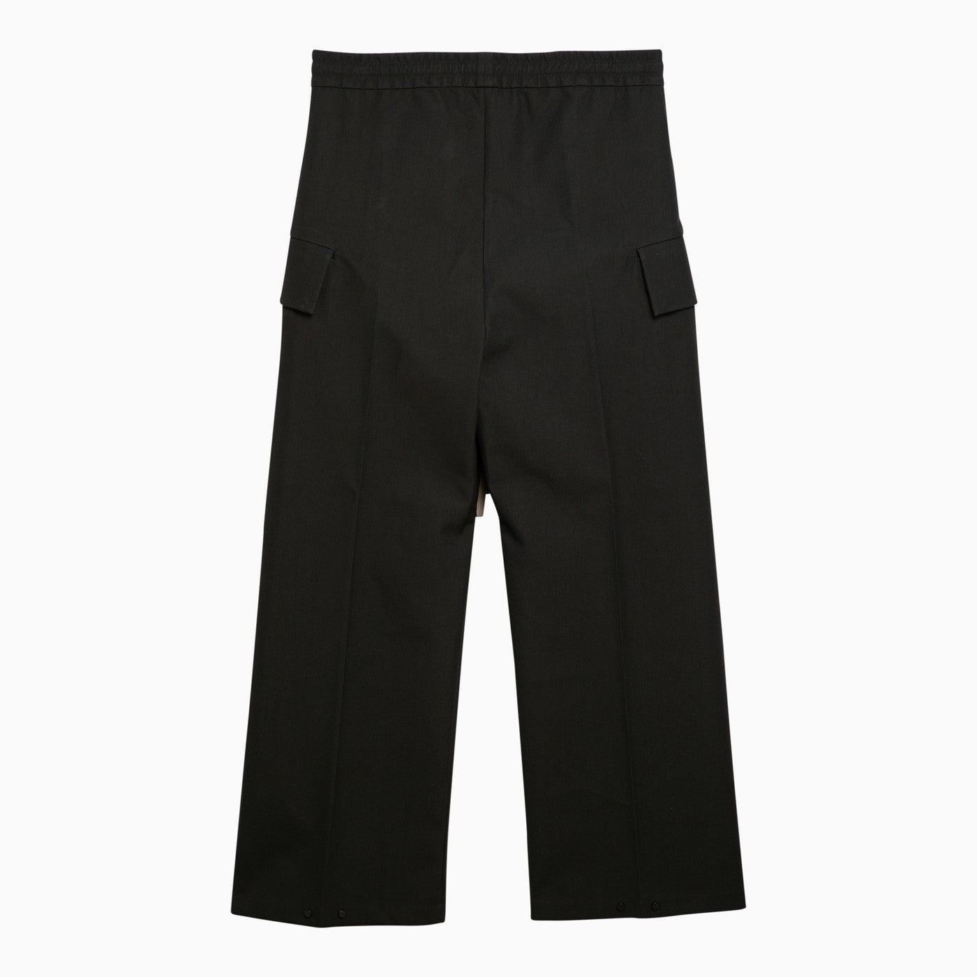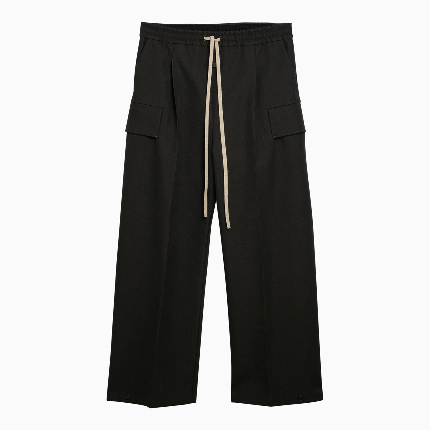 Pantaloni a gamba a gamba a gamba a gamba a gamba di lana vergine oliva con una cintura elasticizzata con tasche da carico laterale e pieghe del ginocchio.