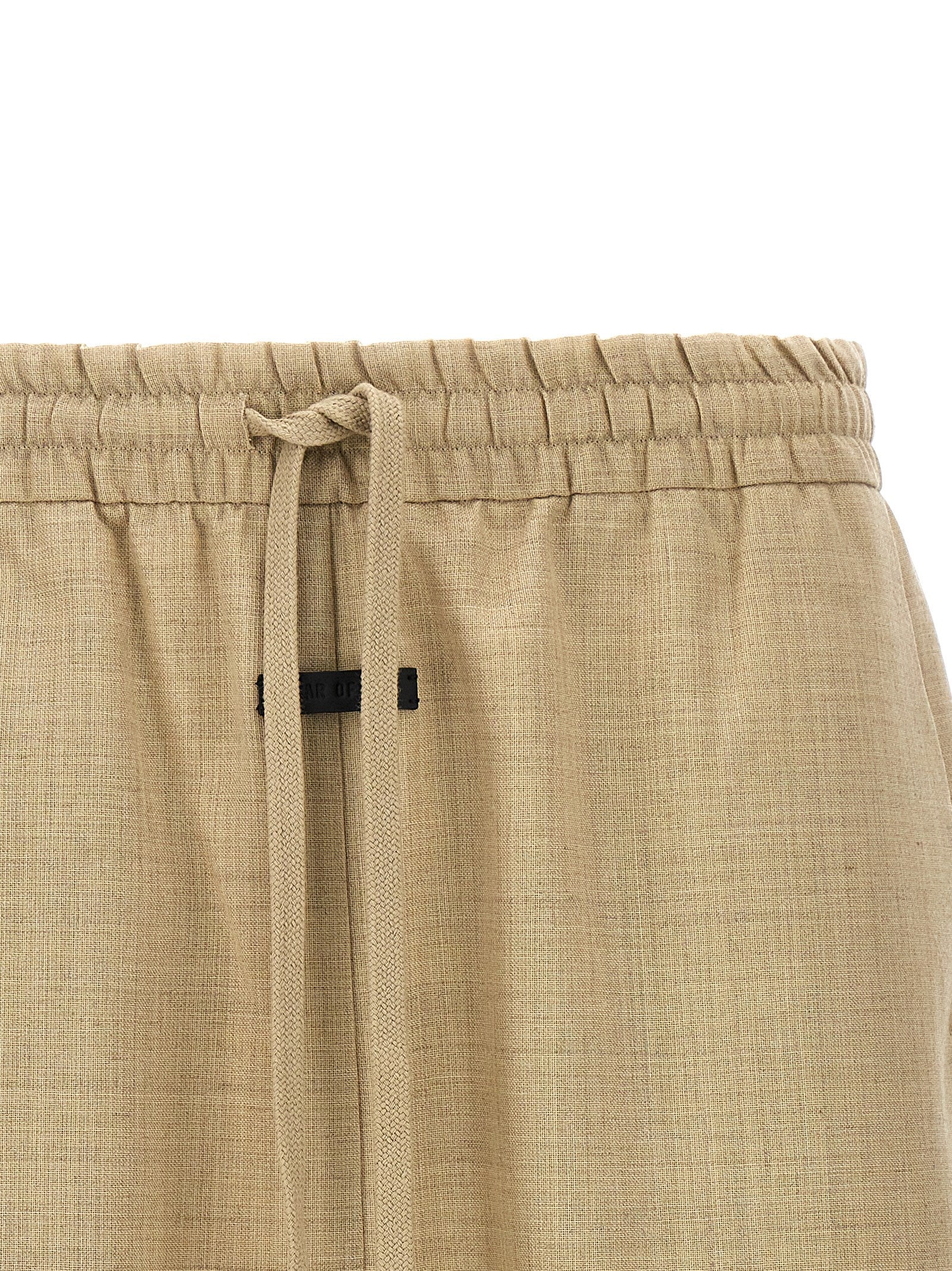 Shorti di lana "rilassati" con cintura elastica e tasche laterali.