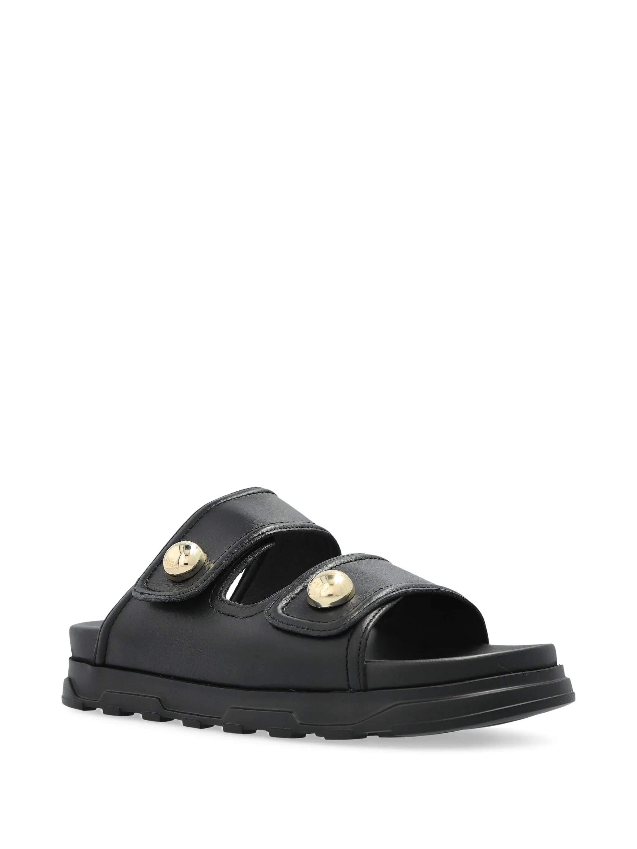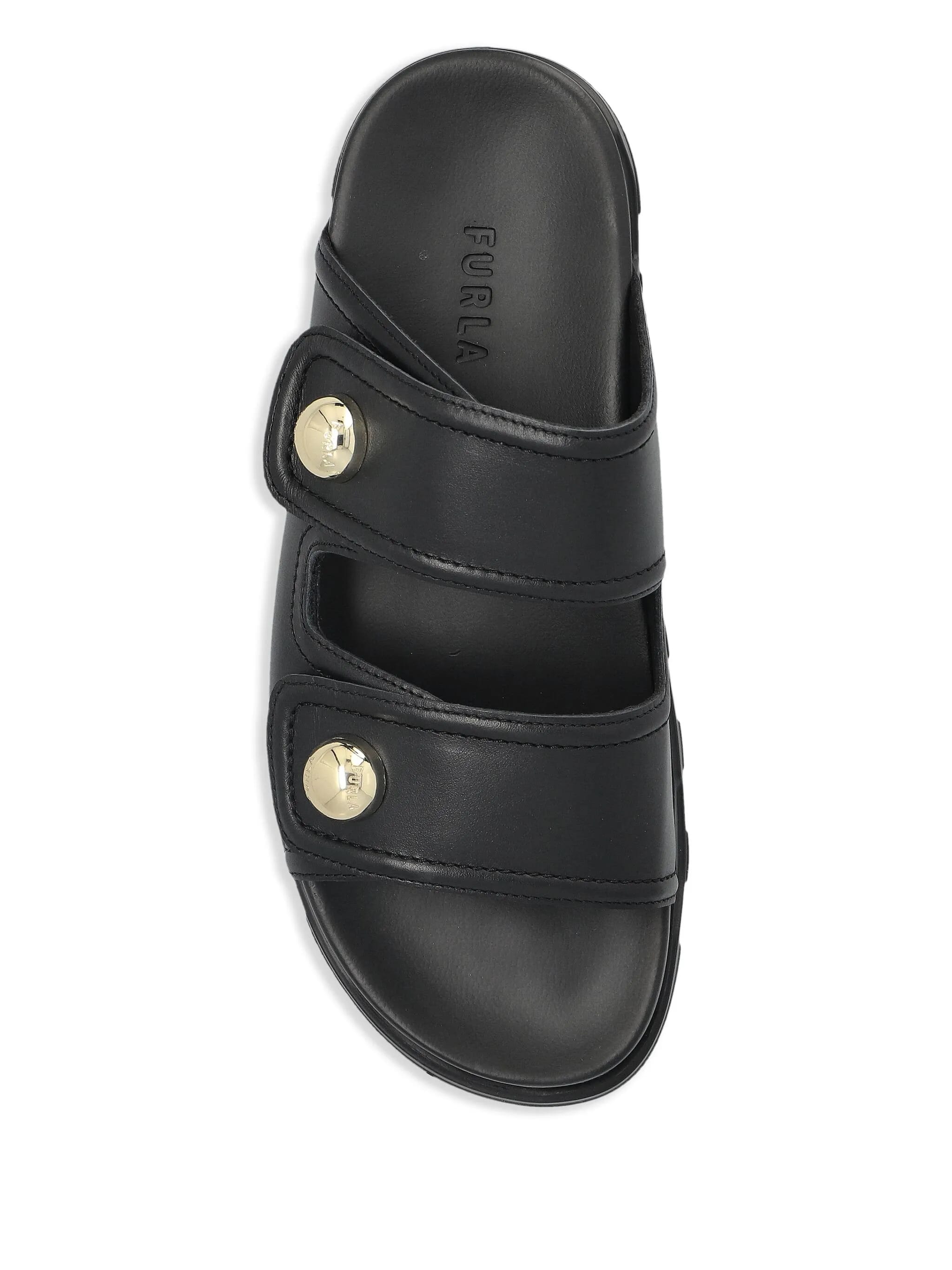 I sandali in pelle di Furla uniscono eleganza e praticità in un design minimalista. La silhouette slip-on assicura una calzata comoda, mentre il plantare sagomato e la soletta in pelle con logo aggiungono un tocco raffinato. La suola piatta in gomma offre stabilità, rendendoli perfetti per un look casual-chic.