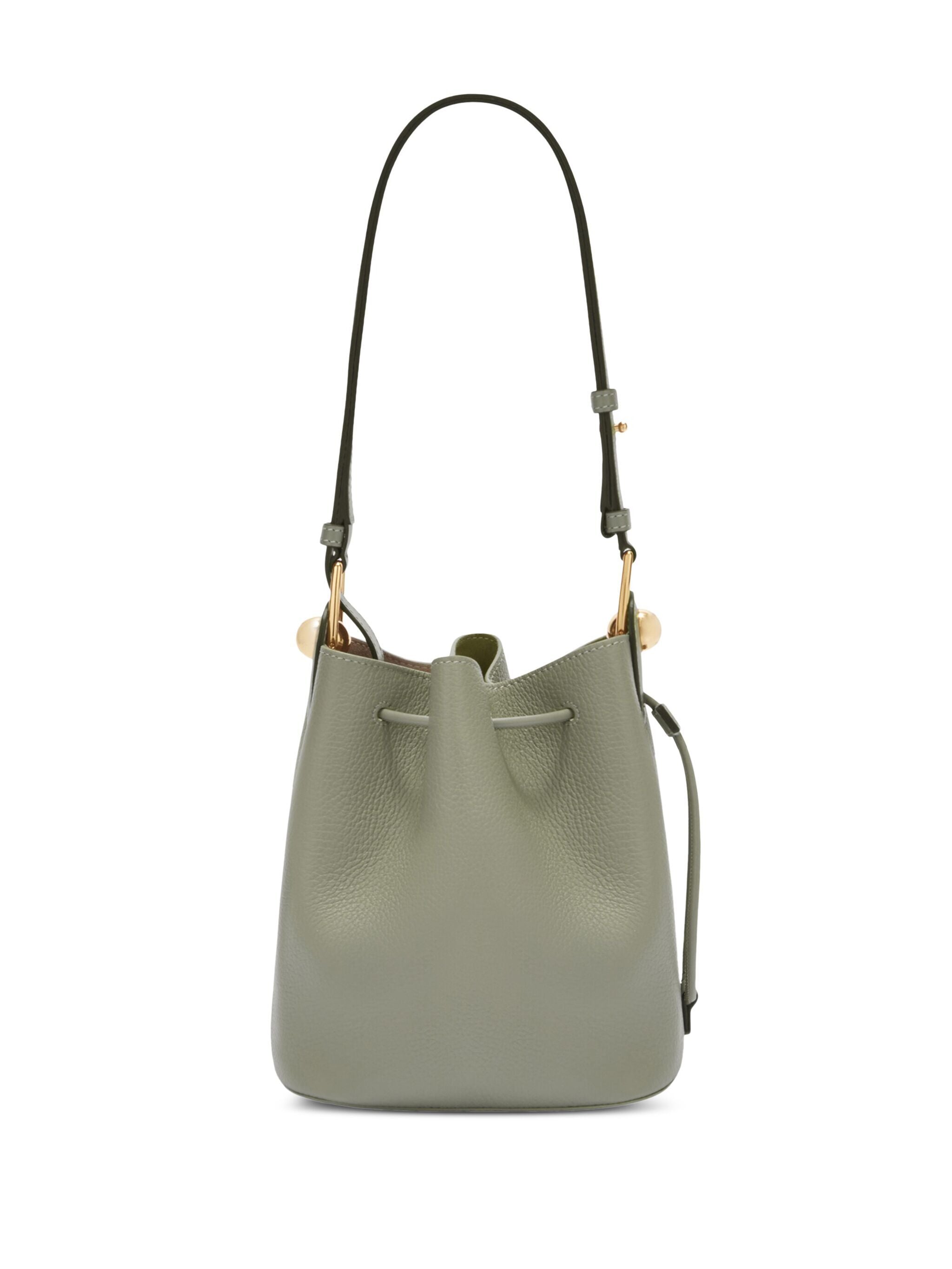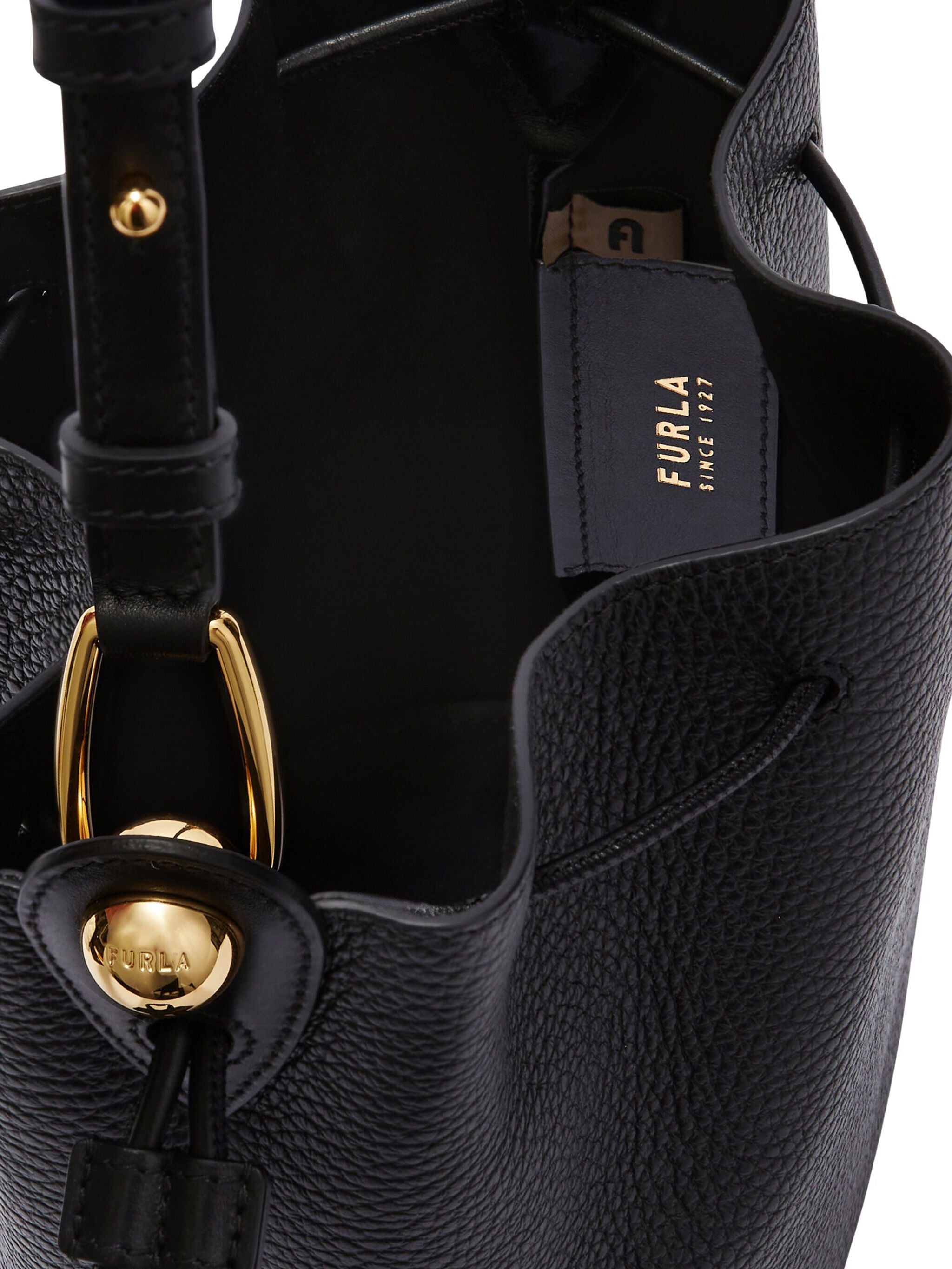 Il secchio Furla Sfera, in cuoio martellato di alta qualità, combina praticità e stile grazie alla sua mini dimensione. Dotato di una tracolla regolabile nel vitello liscio con sistema di funghi, è l'ideale da indossare con la tracolla, mentre la chiusura del coulisse e l'hardware a forma di palla danno luminosità ed eleganza.