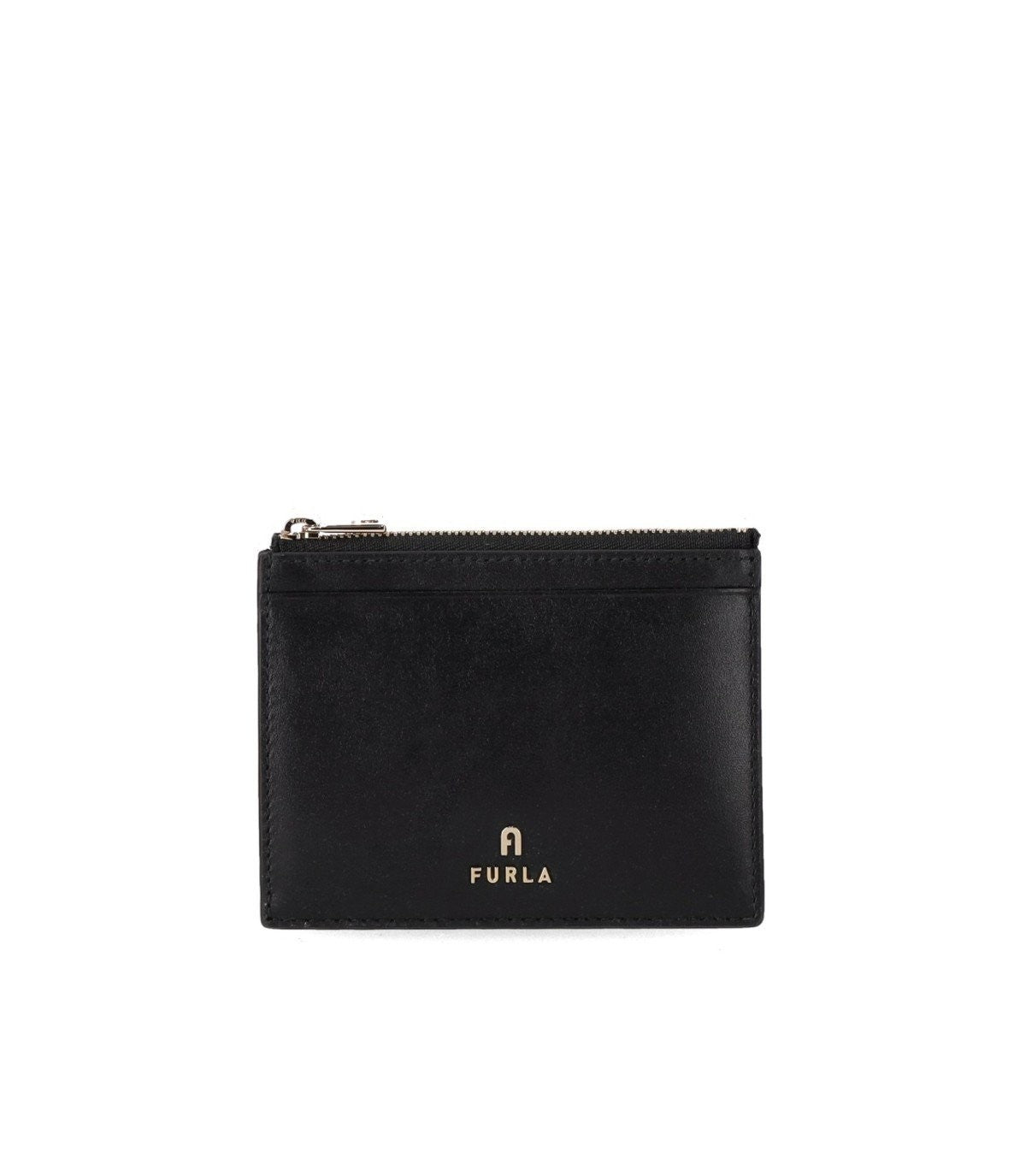 Camelia L Holder card di Furla realizzato in pelle nera liscia. Dettagli in metallo dorato, logo frontale e chiusura con zip. Viscosio, scompartimento anteriore e slot di carta sul retro. Misura 13x10x1,5 cm. Composizione: 100% in pelle. Composizione interna: viscosa al 100%.