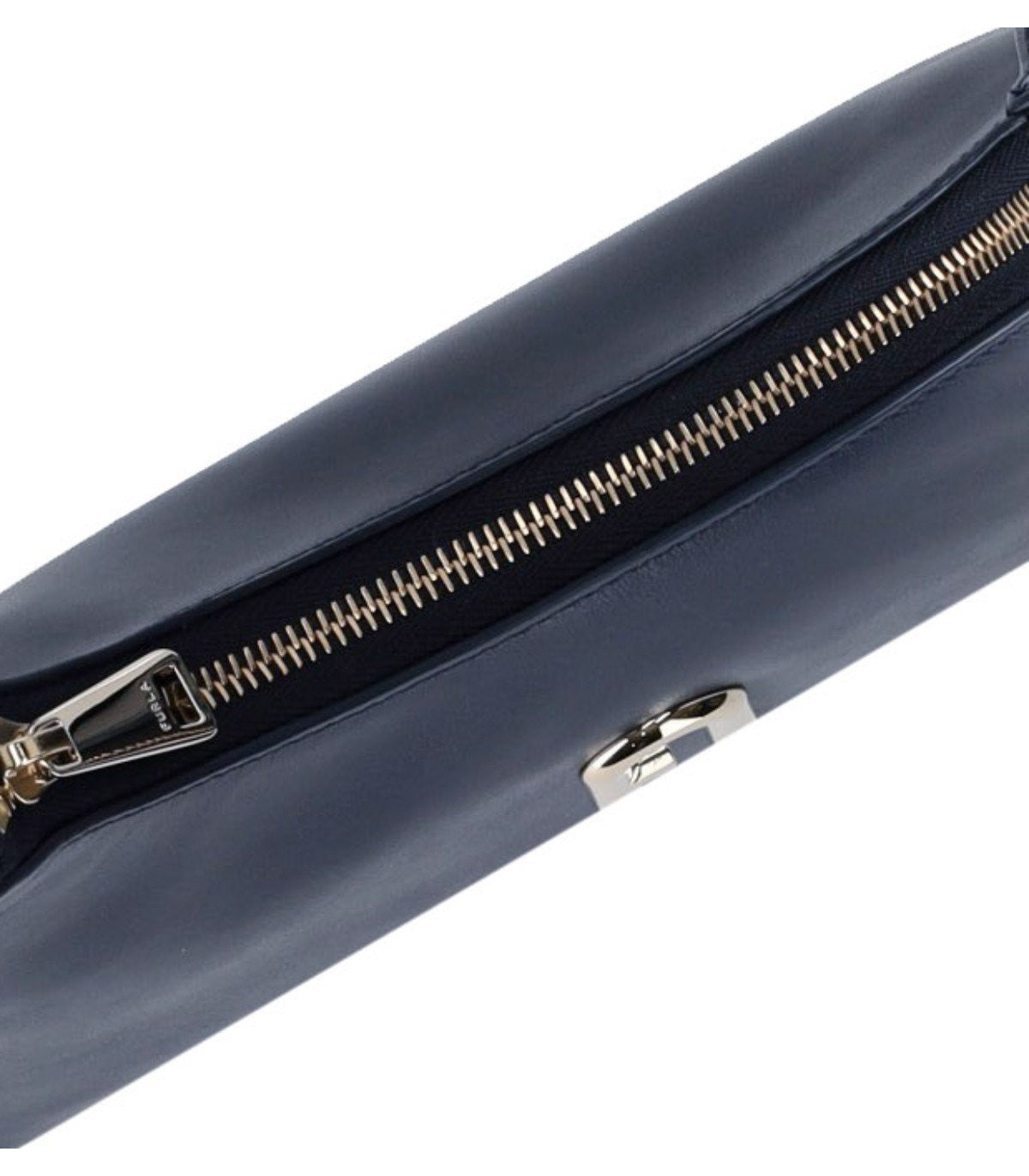 Diamante Borsa a tracolla di Furla realizzata in pelle blu, abbellita con dettagli in metallo dorato, logo ad arco sulla parte anteriore e chiusura a zip. Interni foderati, con una tasca. Misura 24x16x6 cm. Composizione: 100% in pelle.