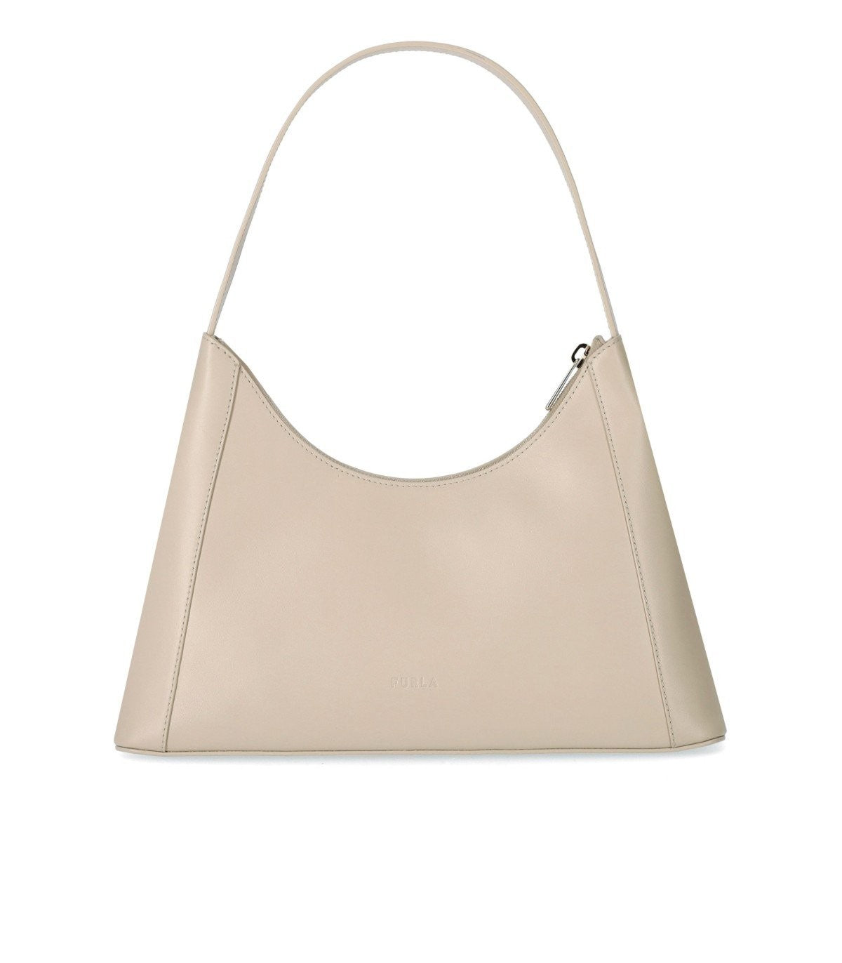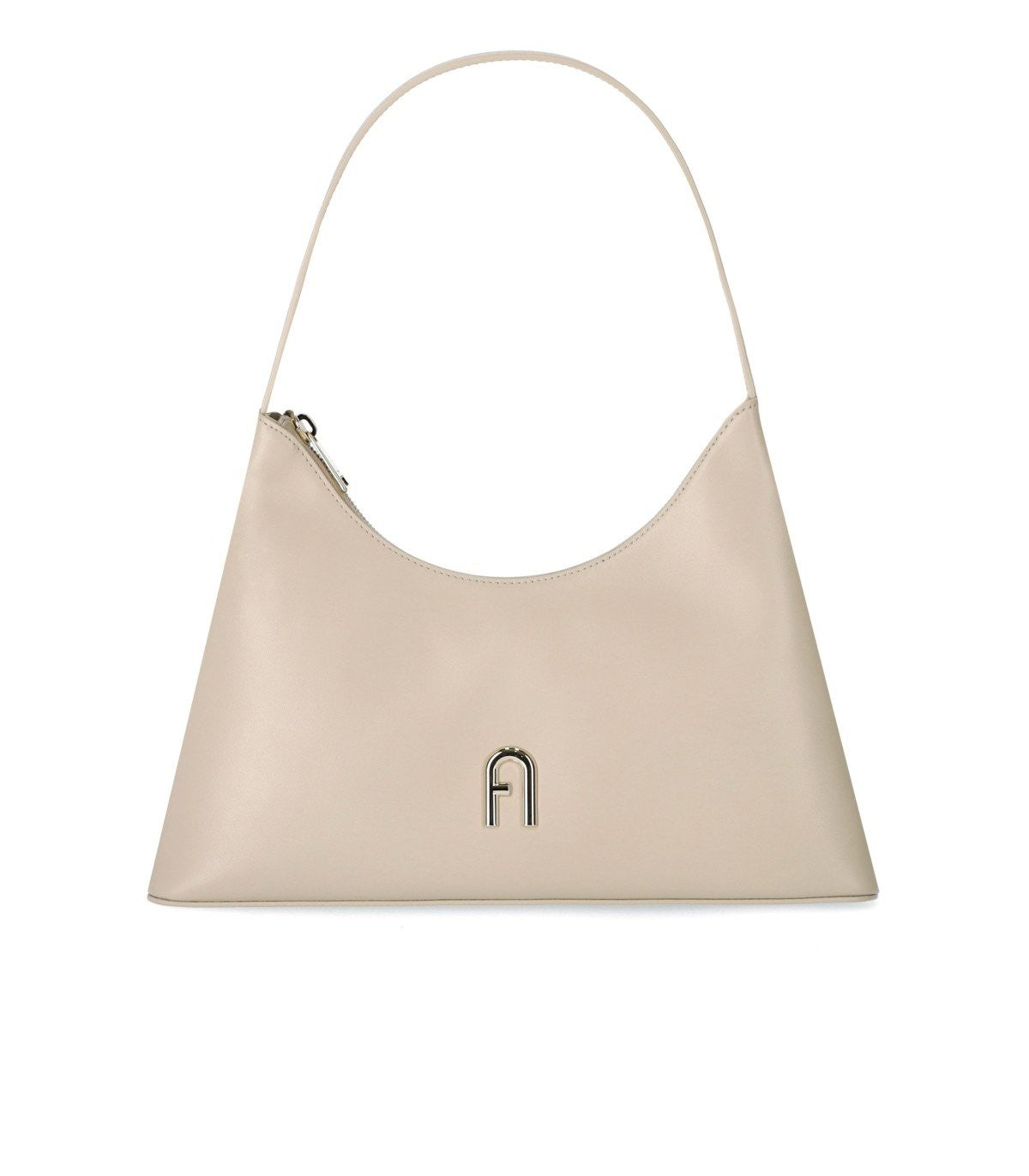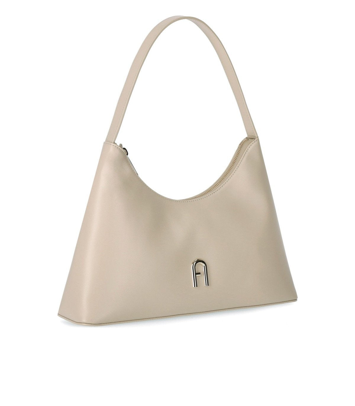 Diamante S Bag di Furla fatta in pelle beige, con hardware dorato e l'iconico logo ad arco sul davanti. Chiusura zip. Interni foderati, con tasche slip. Misura 34x24x8,5 cm. Composizione: 100% in pelle. Composizione interna: 100% poliestere.