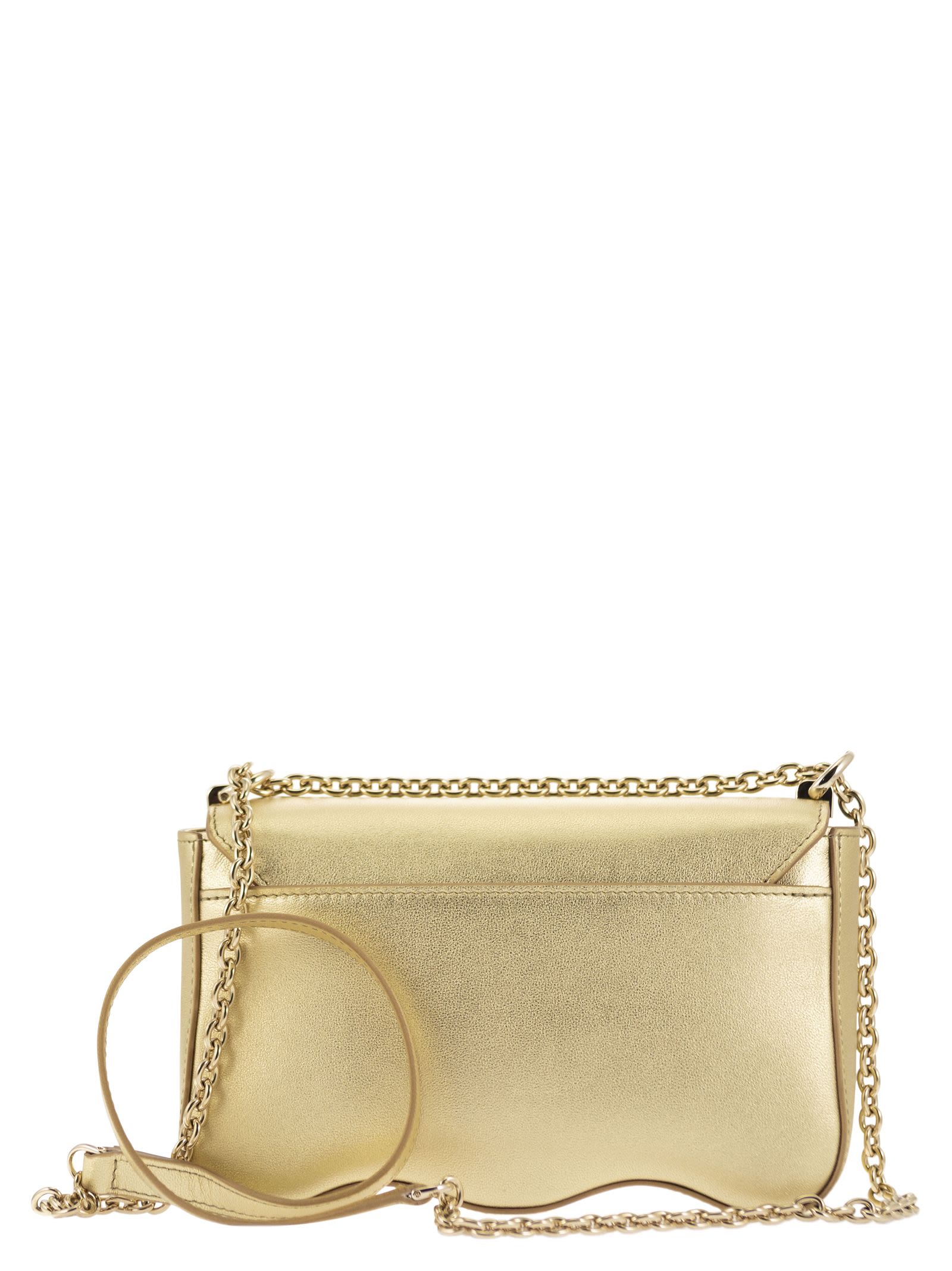 Mini borsa elegante con un design sinuoso di onde. Furla 1927 Wave presenta una costruzione essenziale accompagnata da una cinghia a catena scorrevole per il doppio stile. Le dimensioni piccole e compatte rivelano un interno capiente per trasportare gli elementi essenziali. Indossato come una borsetta, diventa una frizione sofisticata e distintiva. - Tasca a parete interna aperta - tasca posteriore aperta esterna - fermaglio girevole con ID designer di strass: WB01155 BX2658 CGD00