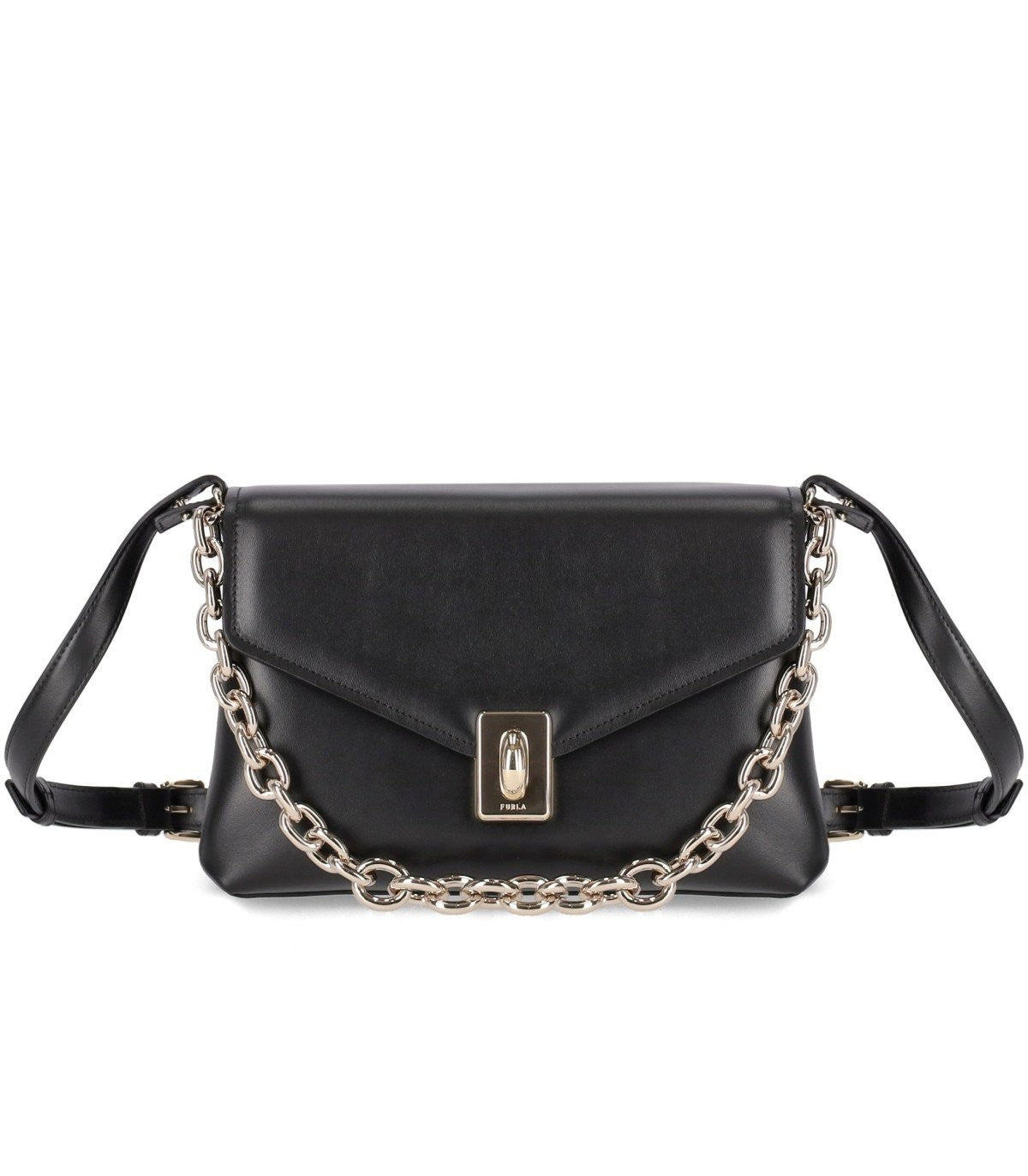 Furla Meridiana è una borsa a tracolla con un design moderno, con un taglio trapezoidale e una tassana laterale, che combina eleganza e praticità. La sua silhouette morbida, evidenziata da una pelle liscia e setosa, è accompagnata da due cinghie: una cinghia a catena corta e una cinghia di pelle regolabile lunga, entrambi rimovibili. Le dimensioni compatte offrono spazio sufficiente per gli elementi essenziali, mentre la chiusura del lembo con Galvanic Bridge garantisce sicurezza e stile. La tasca zip interna e la tasca a parete aperta aggiungono funzionalità al design raffinato. Composizione interna: 40% in nylon 40% poliuretano 20% poliestere Composizione esterna: cuoio 100% Dimensioni in centimetri: 27 x 17,5 x 9,5 (L x H x d) Lunghezza massima cinghia 122 cm Lunghezza del cinturino minimo 104 cm