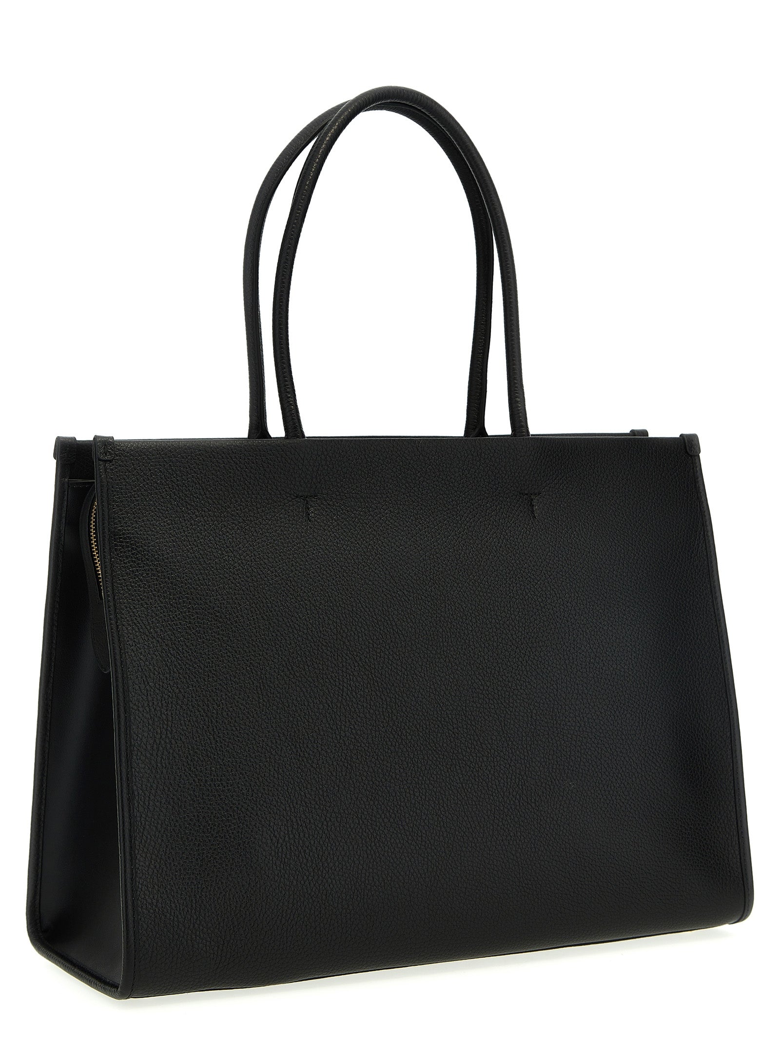 'Opportunità L'Borsa per la spesa in pelle con logo in rilievo, doppia maniglia, chiusura a zip.