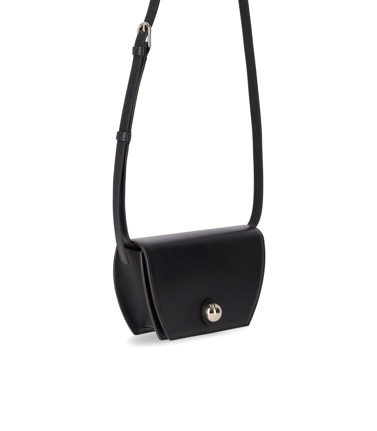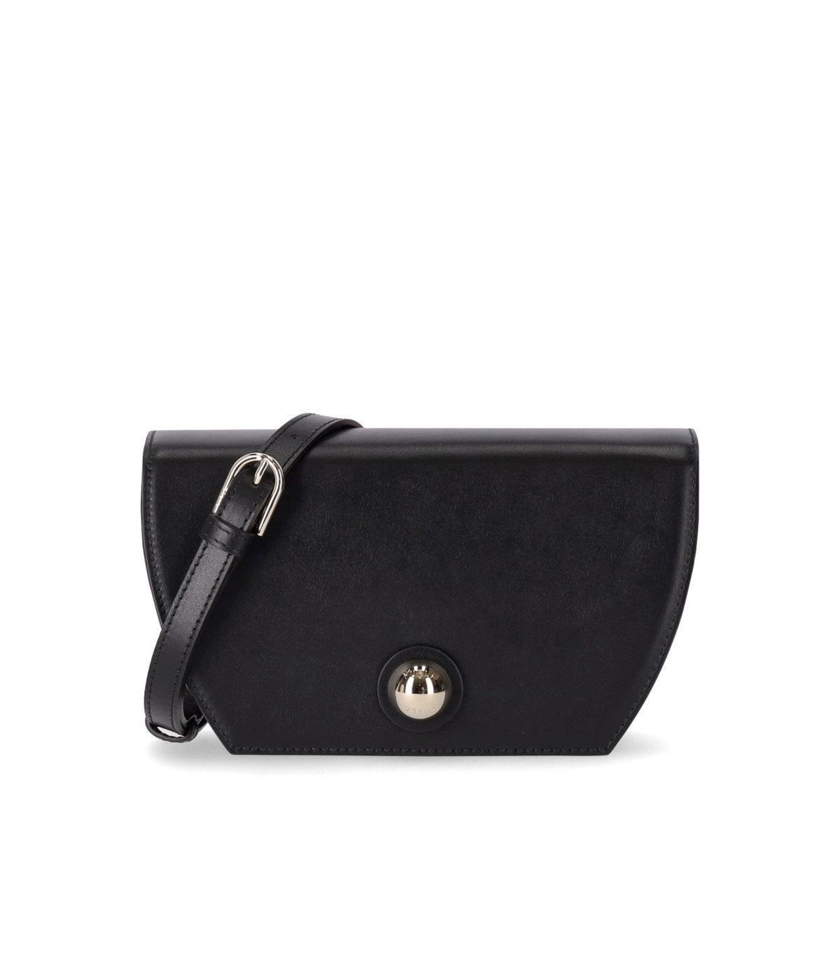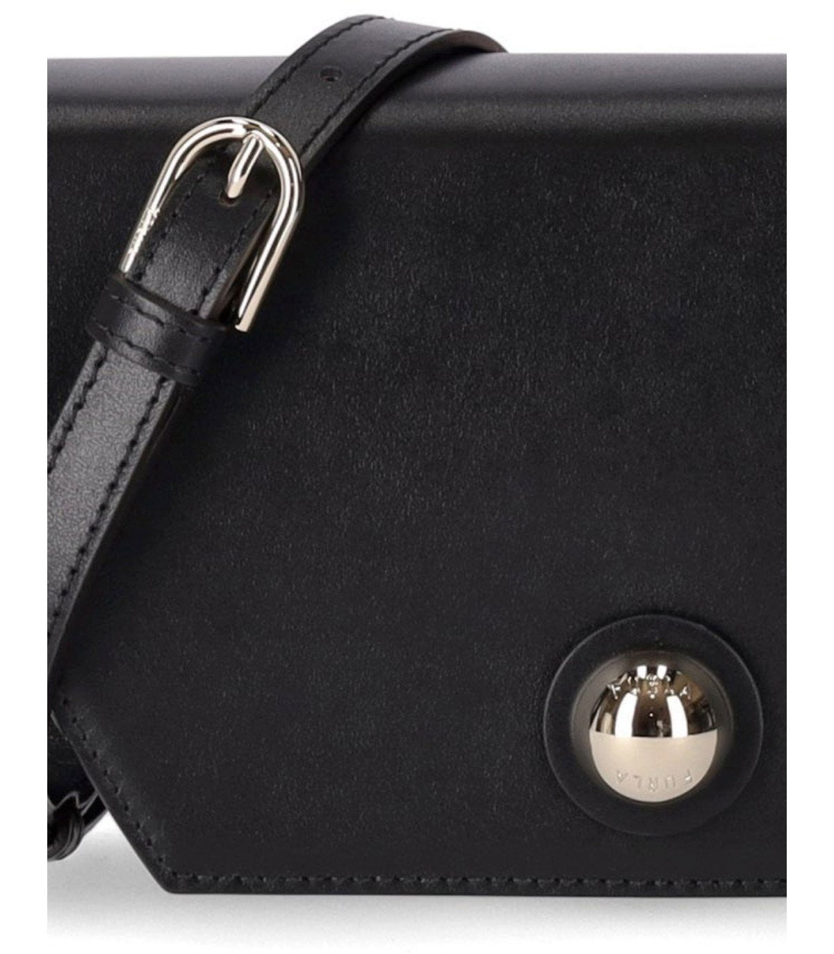 Stuma a tracolla Furla Sfera fatta in pelle nera liscia, abbellita con la chiusura del logo sul davanti. Interni foderati, dotati di una tasca a parete con zip, chiusura a scatto e spalla regolabile che ti consente di indossare la borsa come box trasversale o in vita. Misurazioni 15x13x6 cm. Composizione esterna: cuoio al 100%. Composizione interna: 50% di nylon, 50% di poliuretano.