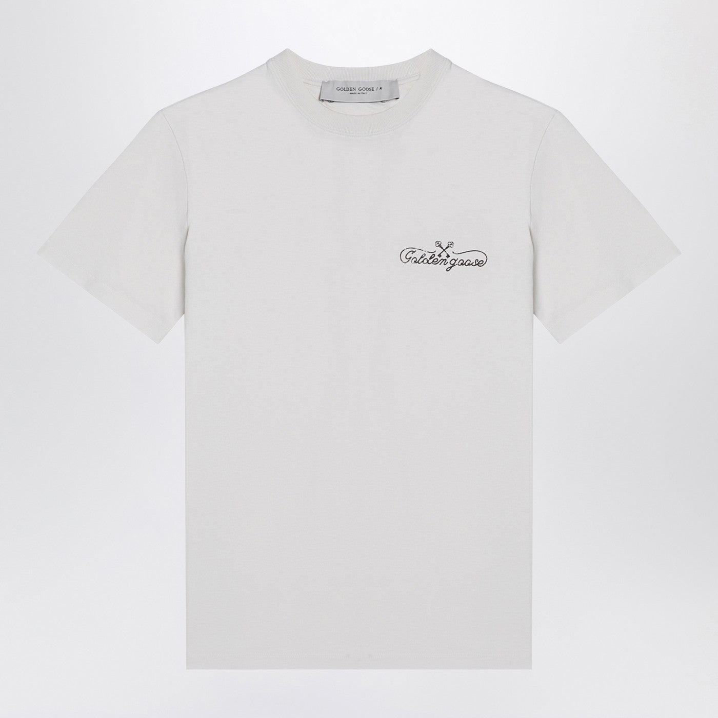 Maglietta con il collo dell'equipaggio di cotone bianco dorato con logo