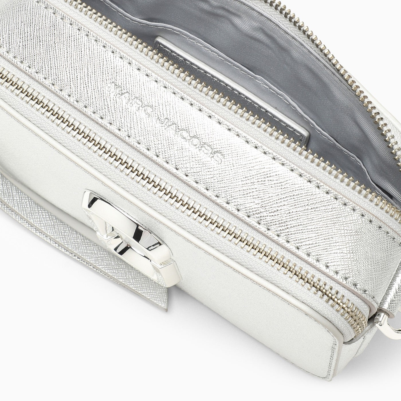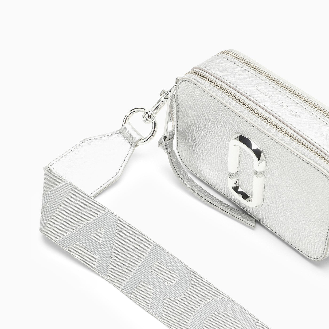 Borsa a tracolla in pelle di Saffiano d'argento di Marc Jacobs con una doppia fissaggio con zip, una tracolla in tessuto logo rimovibile e regolabile, hardware in metallo tono argento e una placca monogramma sulla parte anteriore.