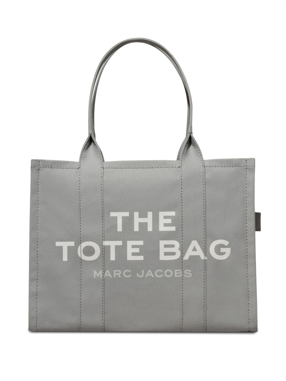 La grande borsa di Marc Jacobs con grigio, cotone, stampa logo sul davanti, scompartimento principale e due maniglie superiori.