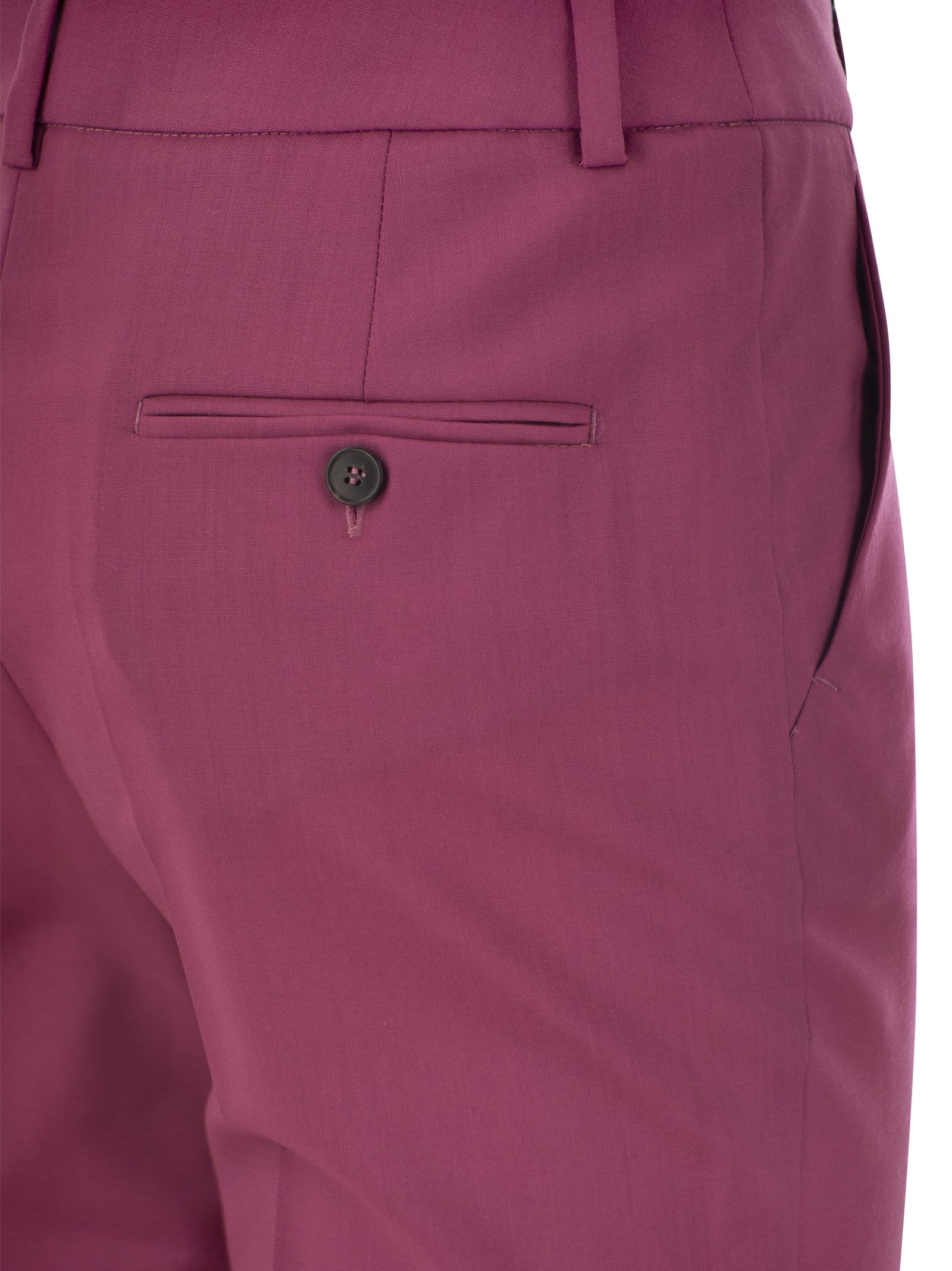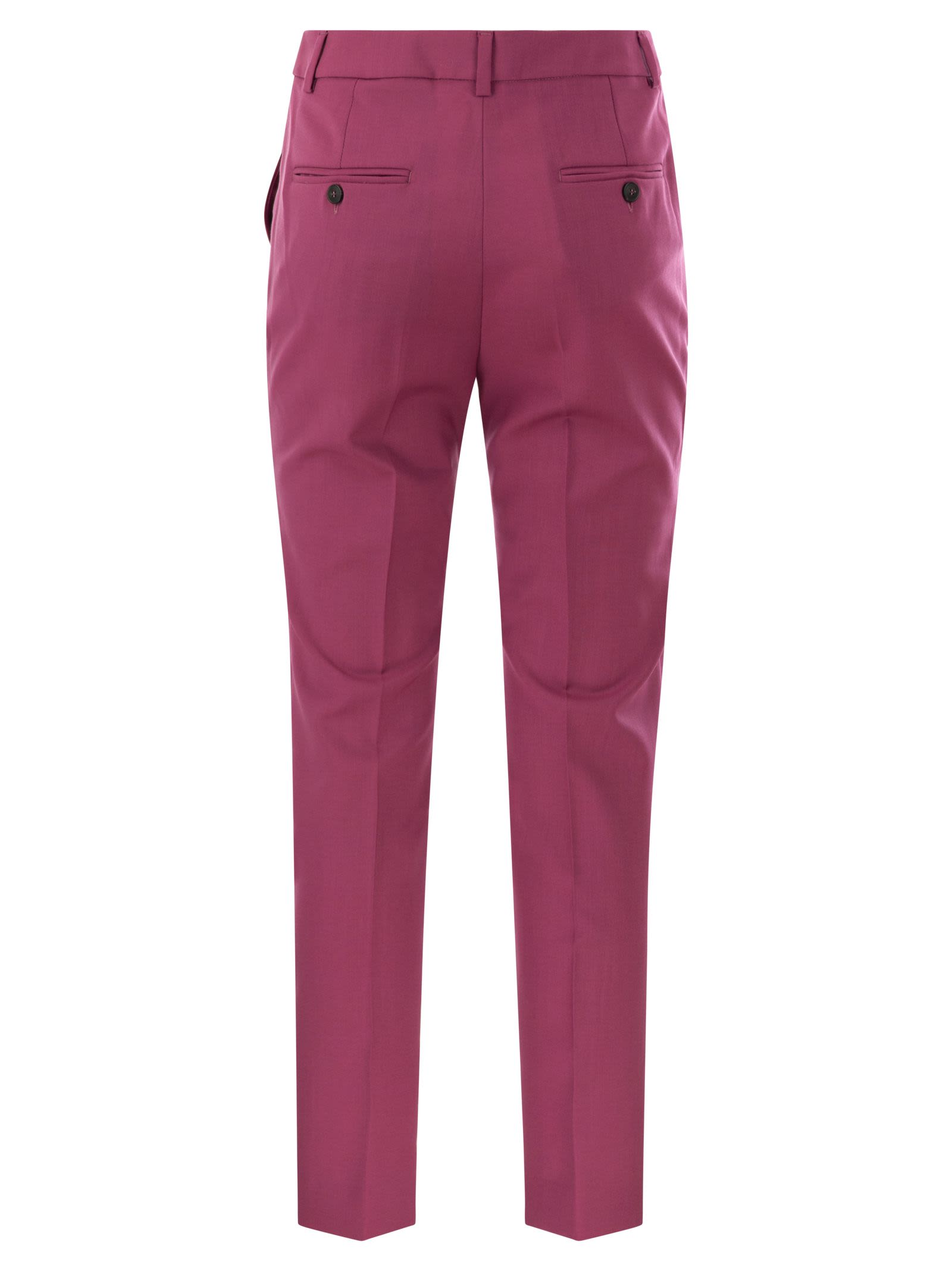 Pantaloni in stile sigaretta realizzati in tela morbida in lana e stiramento naturale puro. Modello ritagliato a lunghezza della caviglia completato con piega con stiratura sulla gamba, tasche di bias sul davanti e tasche a doppia bava con pulsante sul retro. Fissato con una cintura alta, zip e flap a gancio. - Slimt Fit - Lunghezza alla caviglia - ID designer di chiusura anteriore: 2415131161600 001