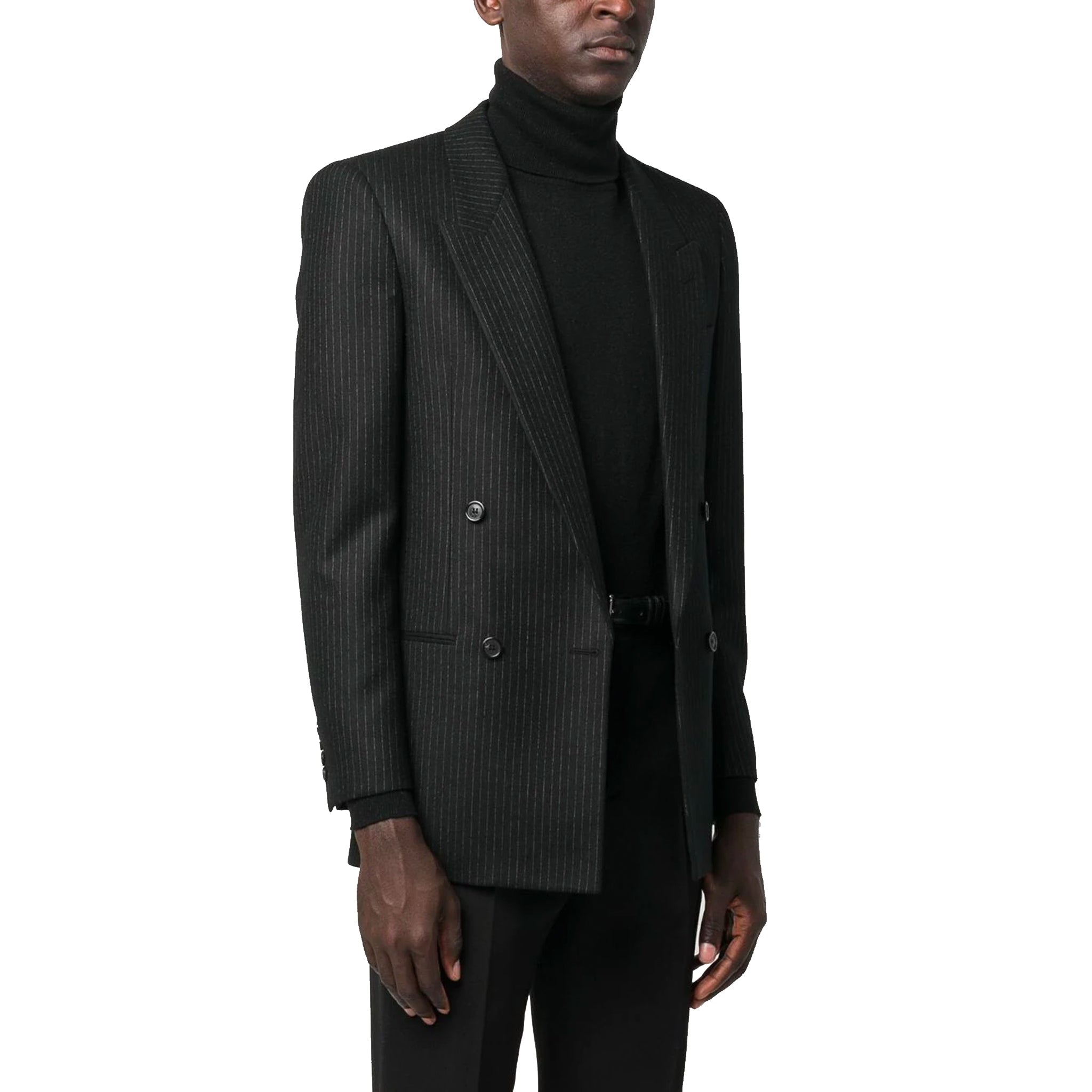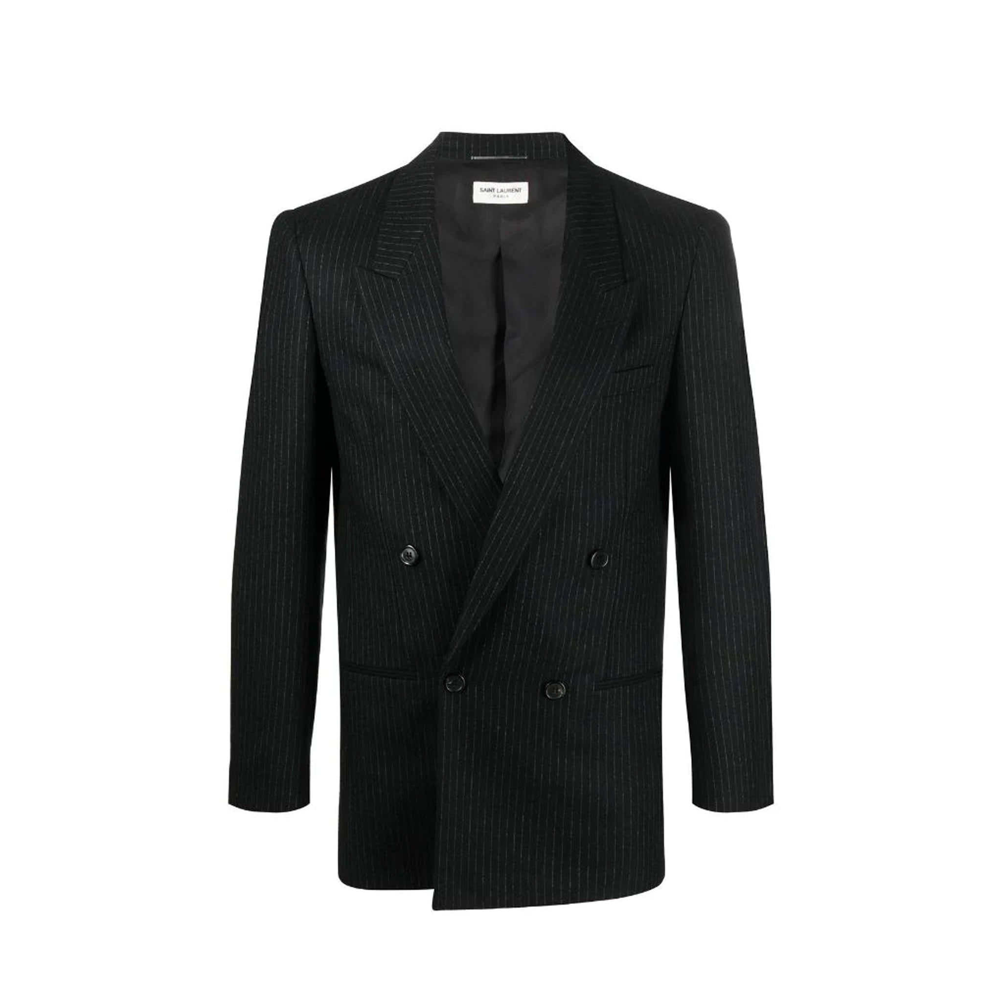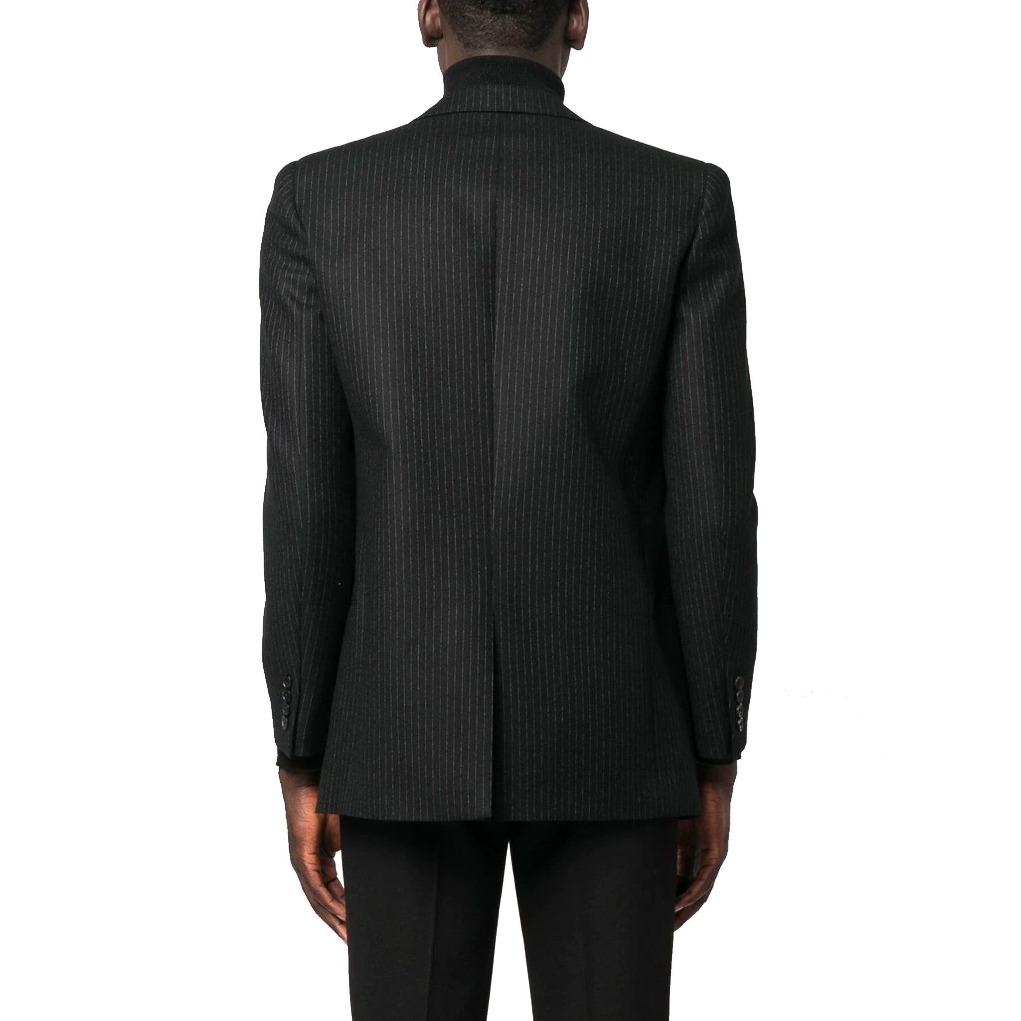 - Composition: 100% wool - silk lining - pinstripe pattern - peak lapels - chest welt pocket - double-breasted button fastening - two front jetted pockets - buttoned cuffs - long sleeves - central rear vent - Made in Italy -