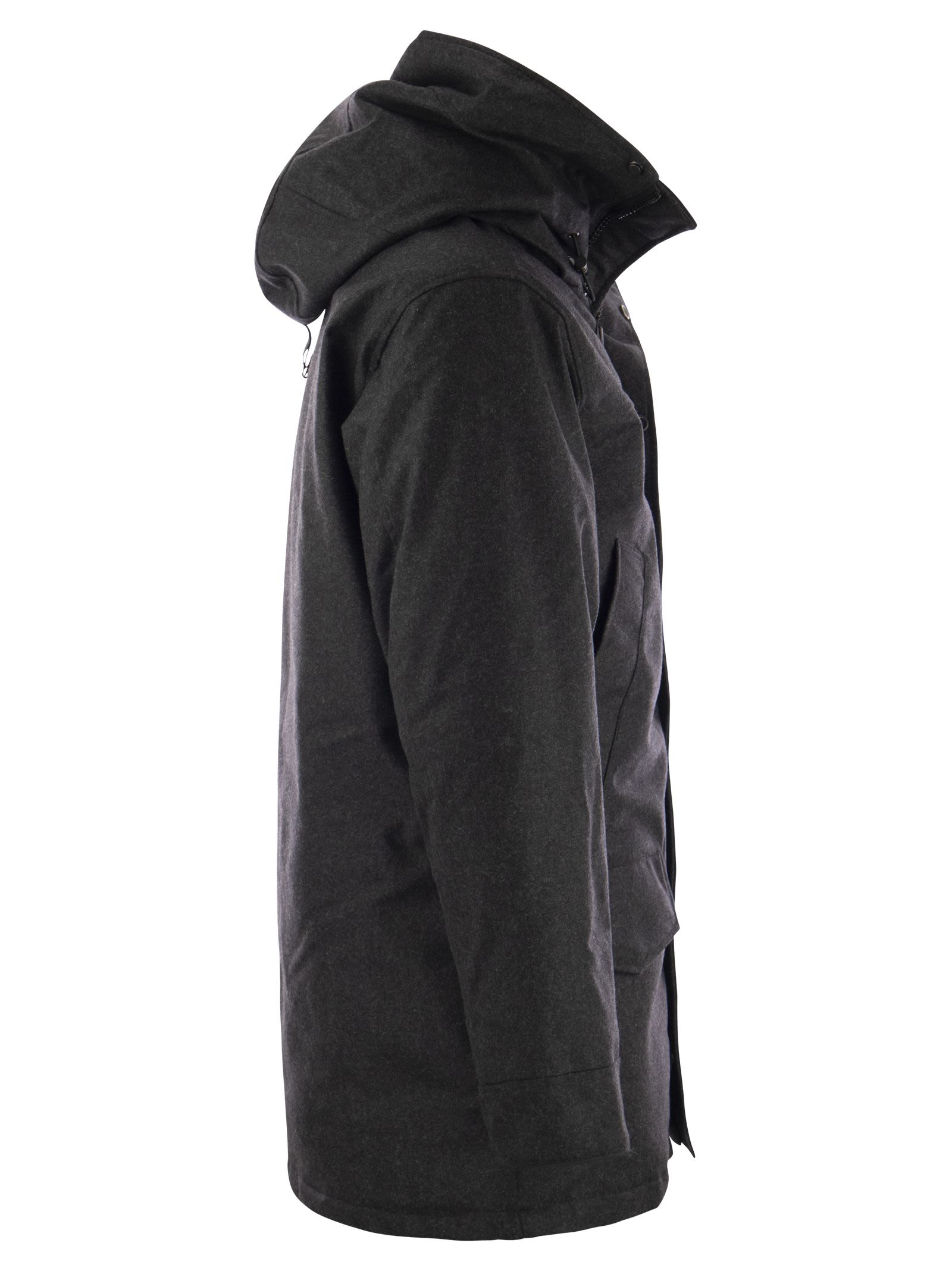 CompositionLana riciclata al 72%, 23% di poliammide, 5% Altre fibre fodera: ripieno di poliestere 100%: 80% di anatra, 20% piuma di anatra
