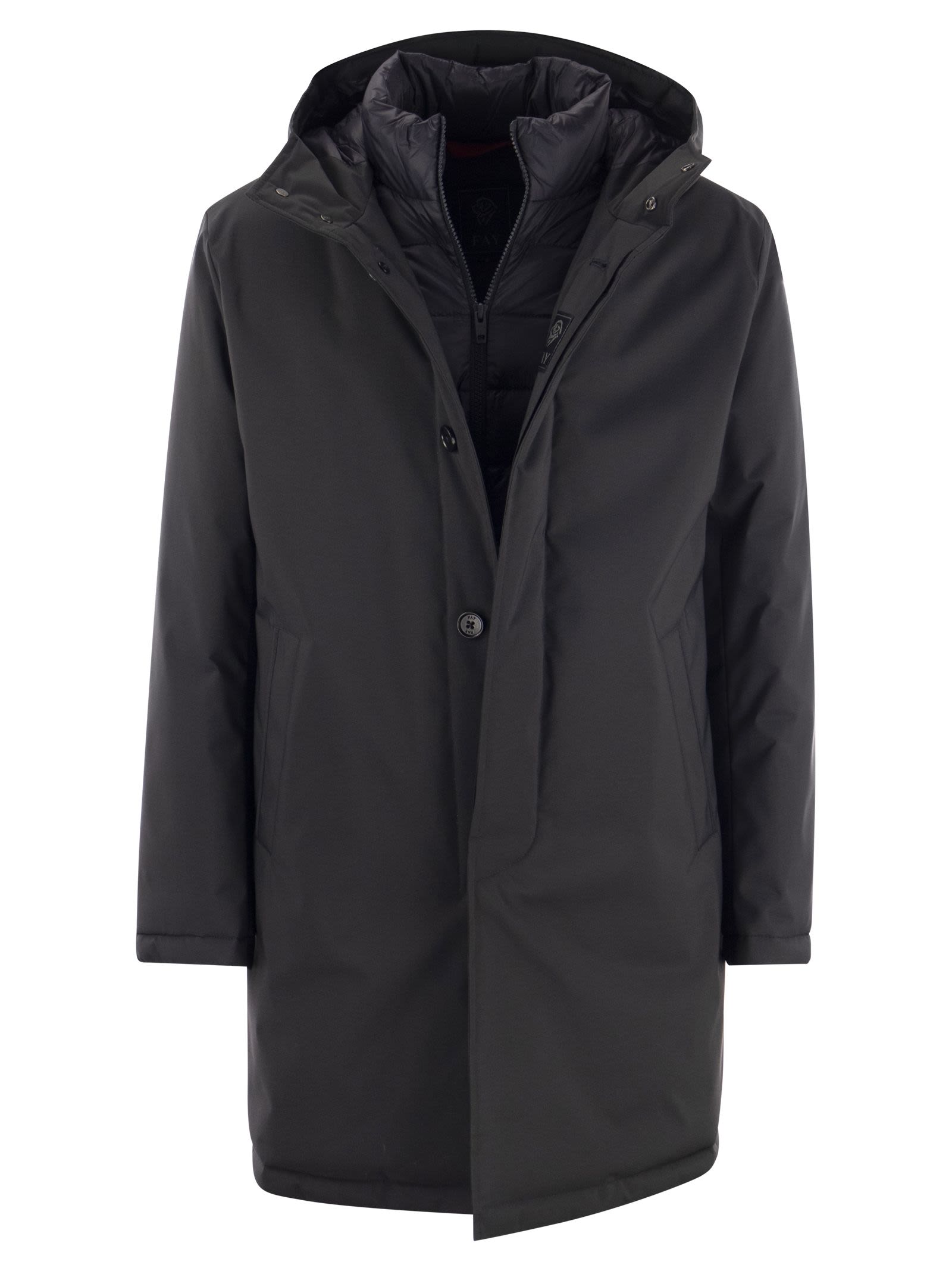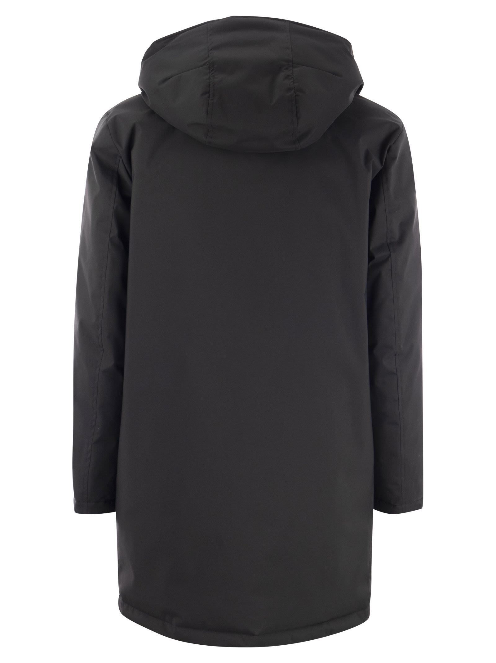 Il cappotto mattutino è l'iconico doppio anteriore mackintosh con una silhouette essenziale e tasche inclinate. La versione piena di calci, con un collare caldo e un colletto interno, è progettata per il freddo. Proposto qui in taffeta tecnico idrorepellente, presenta un fissaggio con zip e pulsanti nascosti. Una tasca interna pratica completa il capo. - Monti: ID designer normale: NAM33470520VAQU807