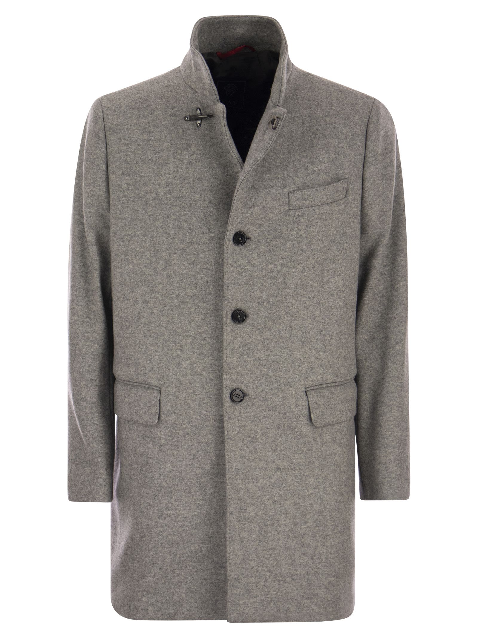 Un must per il gentiluomo contemporaneo, questo cappotto sciolto è realizzato in lana bollita a effetto vintage tinto di filo. Con un colletto in piedi, una tasca della frizione e tasche a flap, ha uno sfiato posteriore. Un indumento con dettagli su misura e classe senza tempo, enfatizzato dall'iconico gancio al colletto. - Made in Italia - Fay Men 's Coat - ID Designer adatta normale: NAM5447025JVJBB201