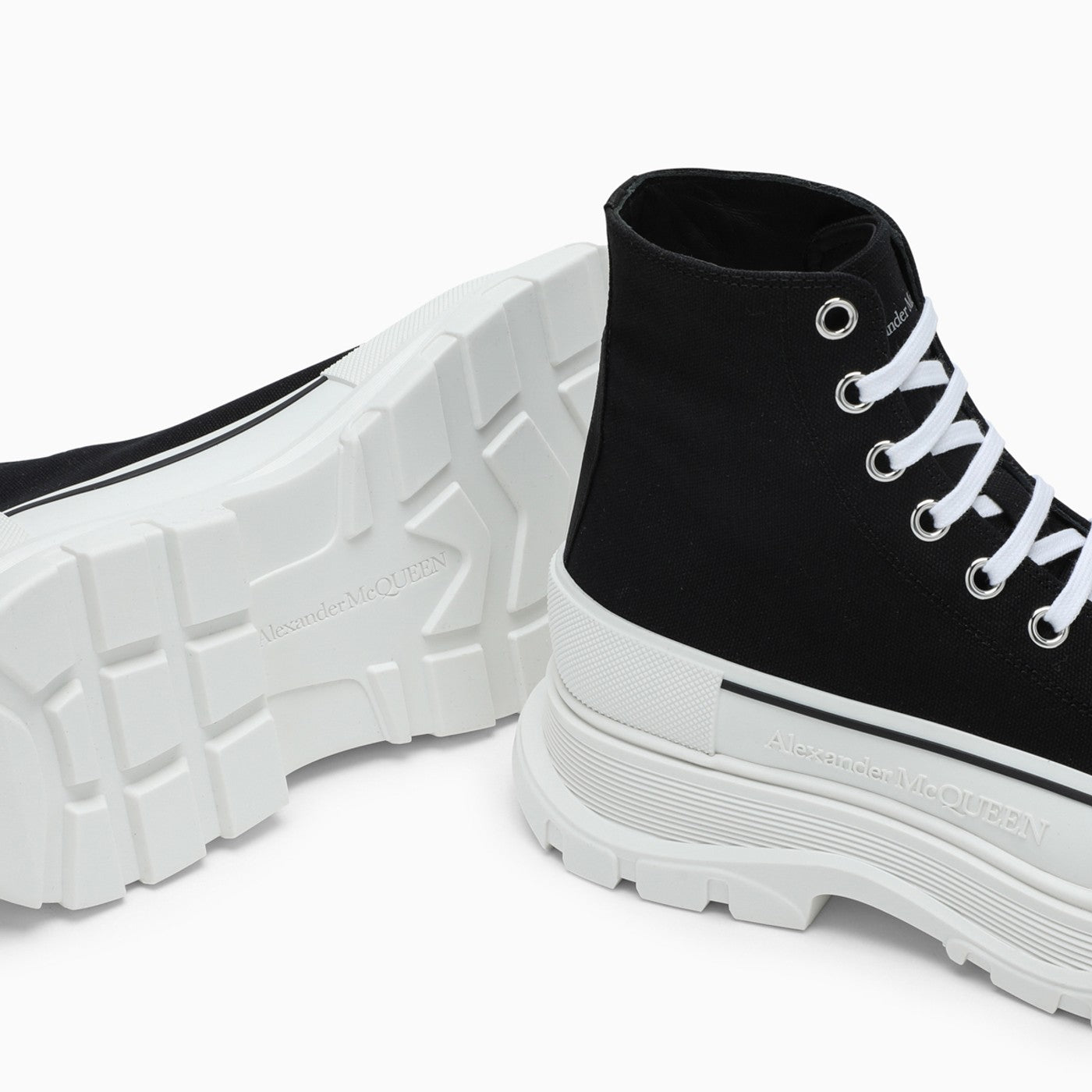 Alexander Mc Queen Black Canvas Tread Slick Stivali