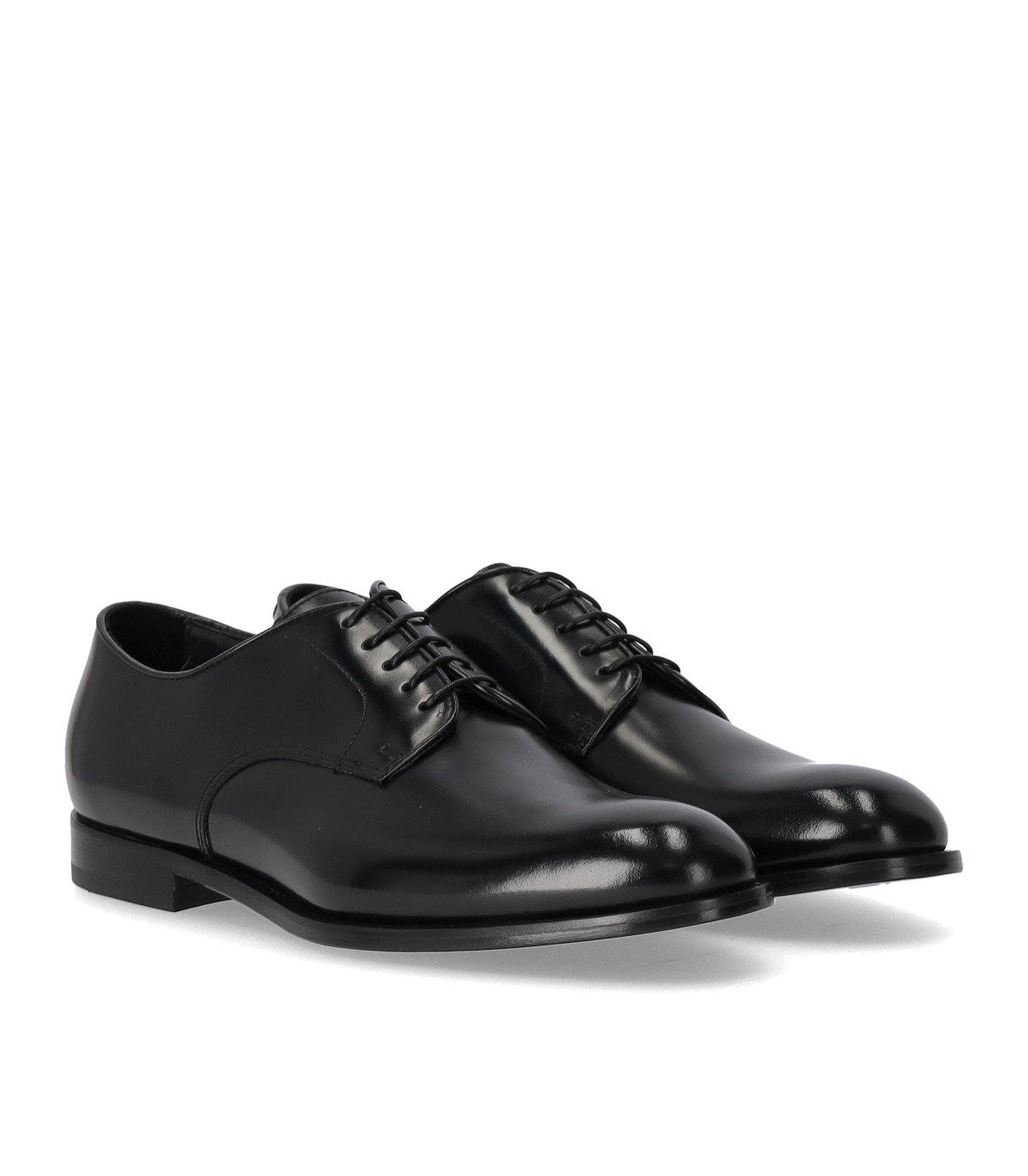 Scarpa douCal allacciata in pelle resistente all'abrasione nera. Interni e soletta in pelle morbida, suola in pelle. Altezza del tallone 2 cm. Fit generoso.