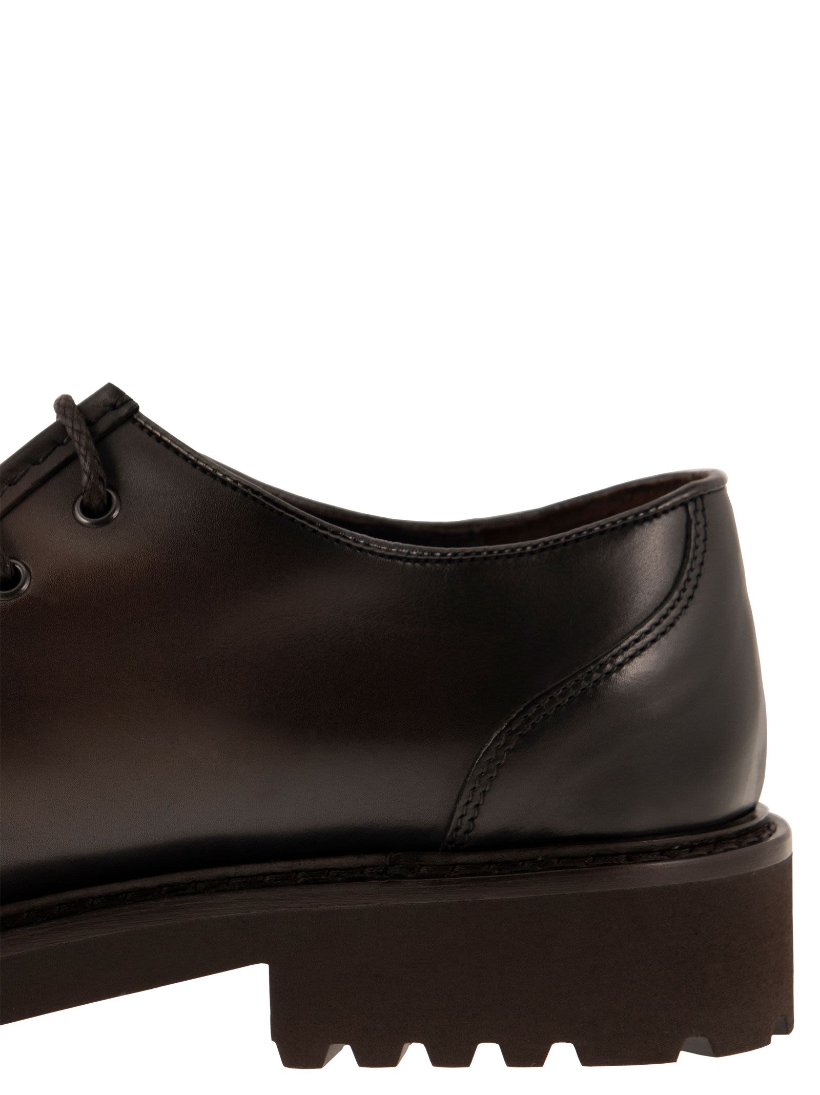 Lace-up a 2 buche in pelle marrone, design elegante con linee moderne e cuciture in rilievo in crasso. Caratterizzato dalla costruzione Blake che rende la scarpa durevole e morbida da indossare. Suola in gomma ultra-luce. - Made in Italia - suola corazzata - ciotola - 2 fori ID designer: DU2737PHILUF159TM29