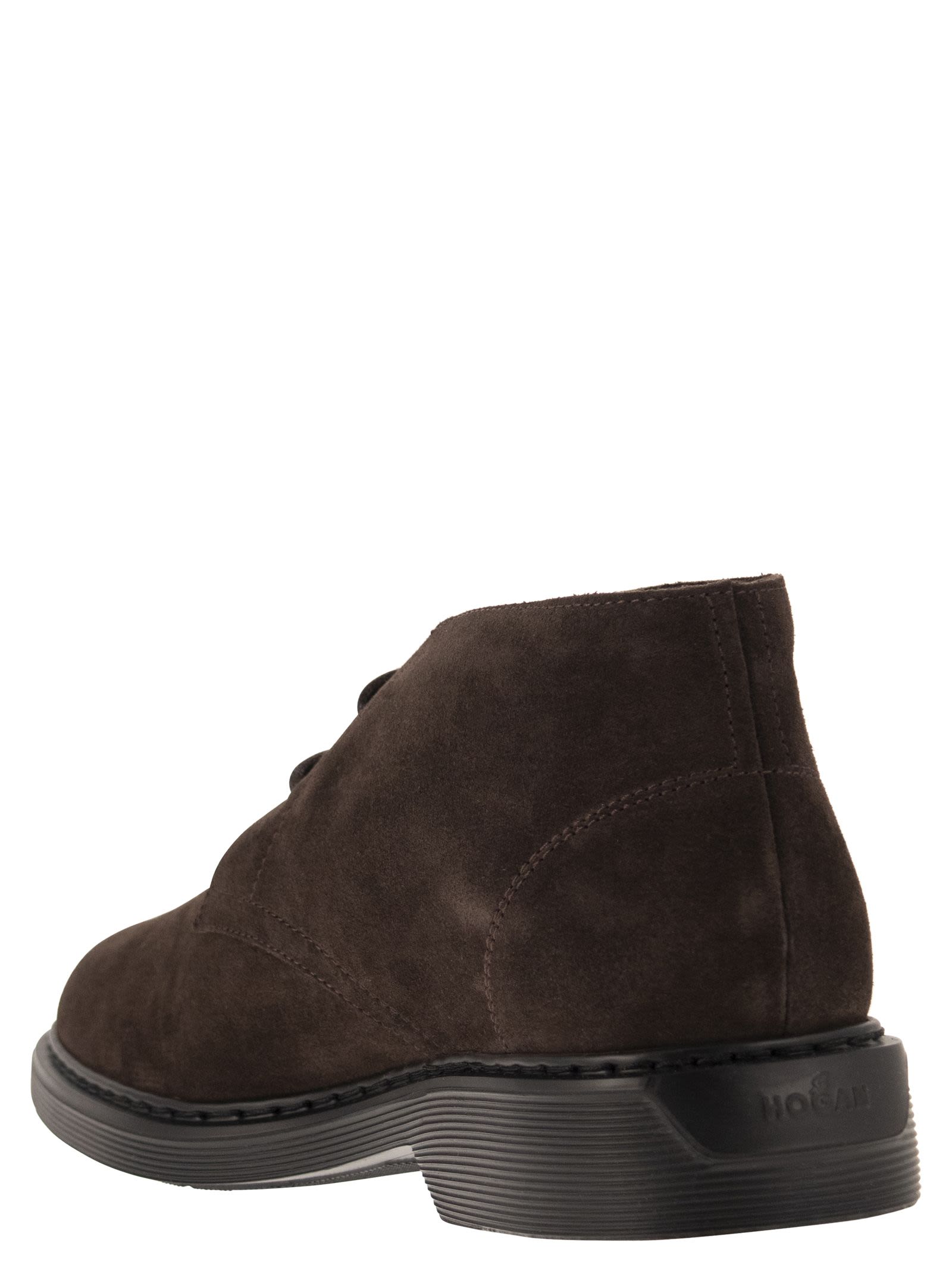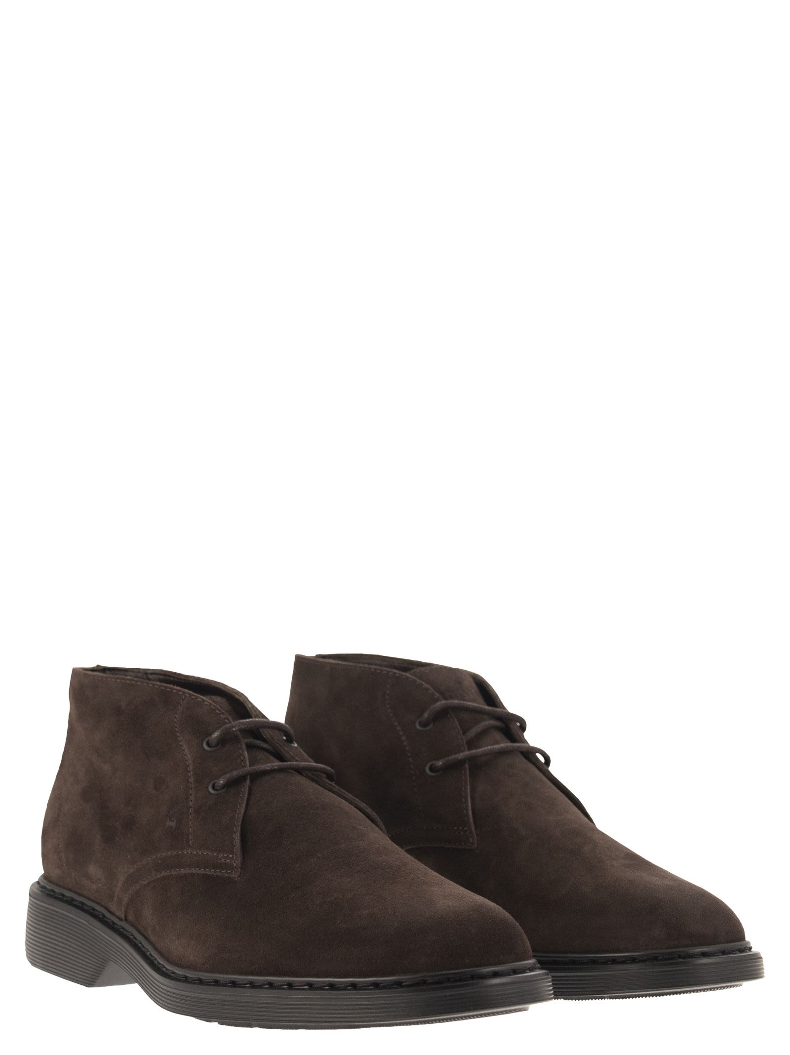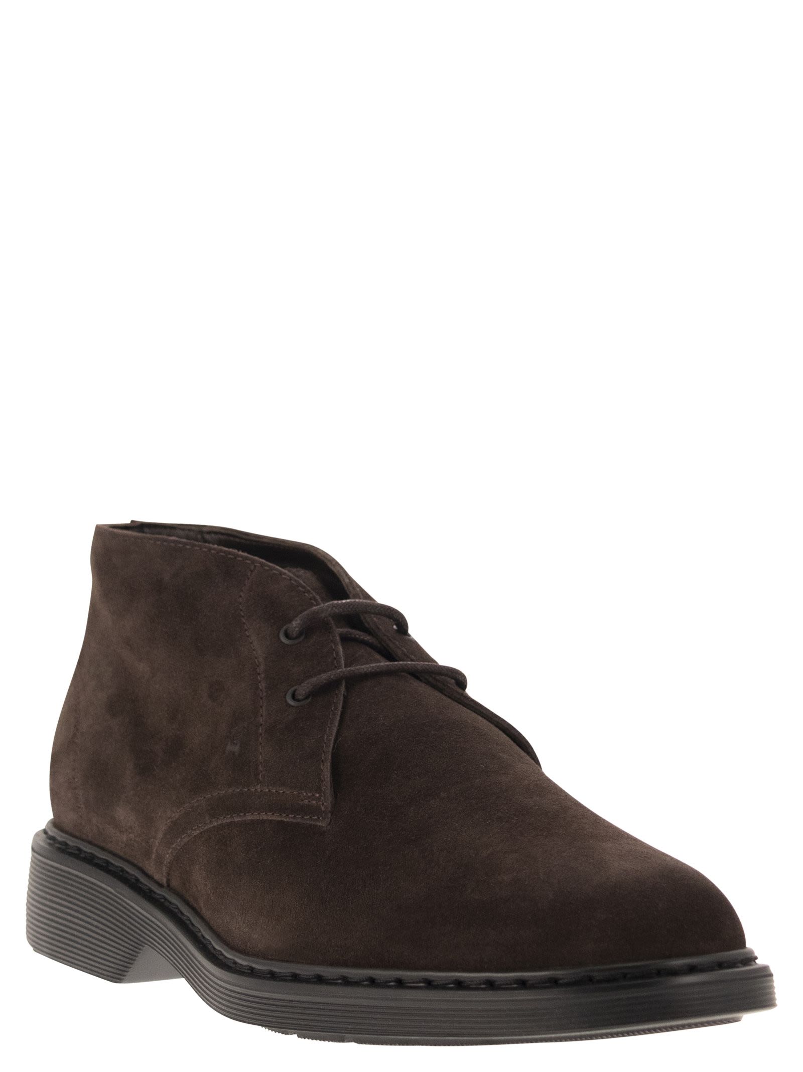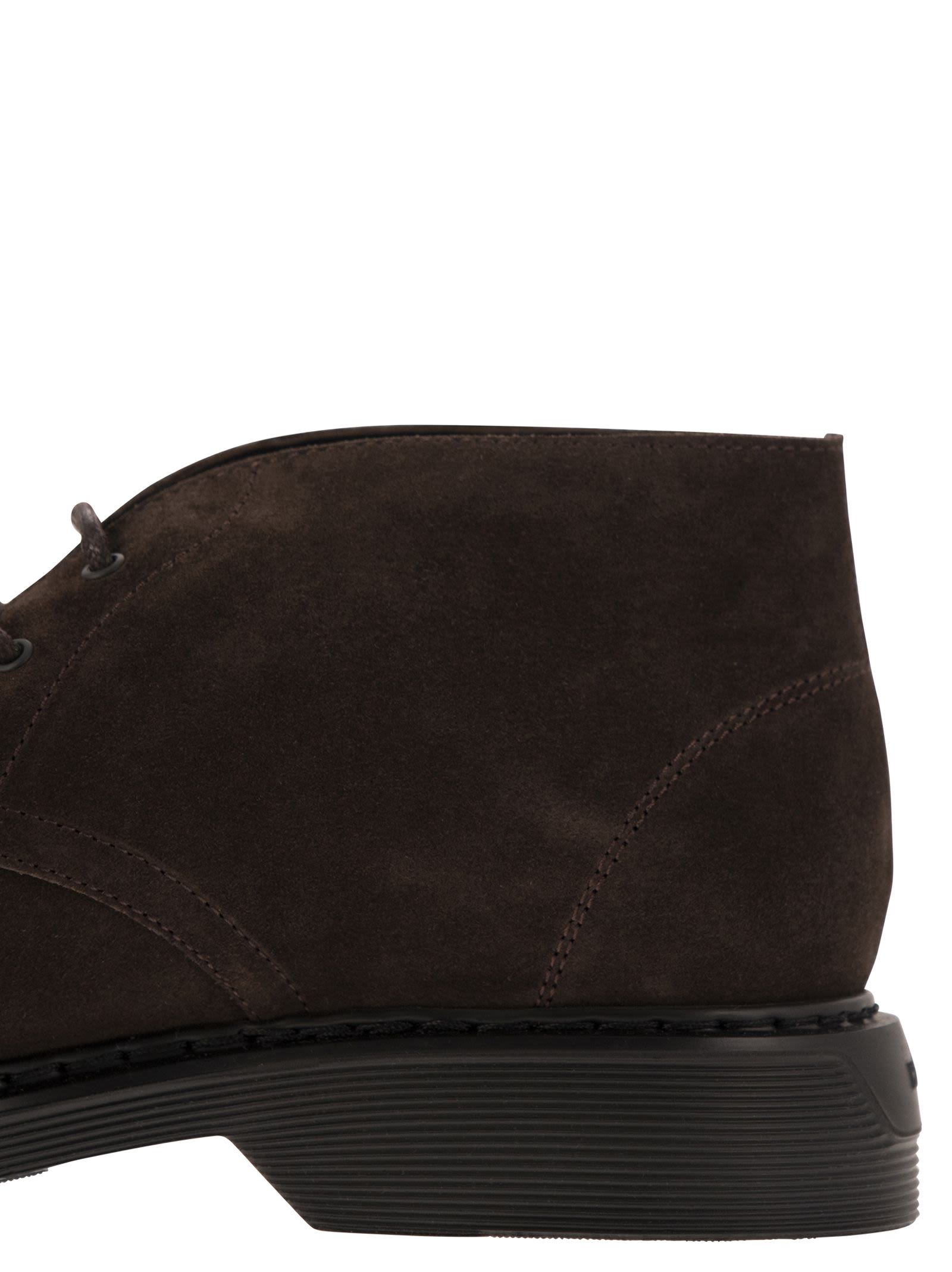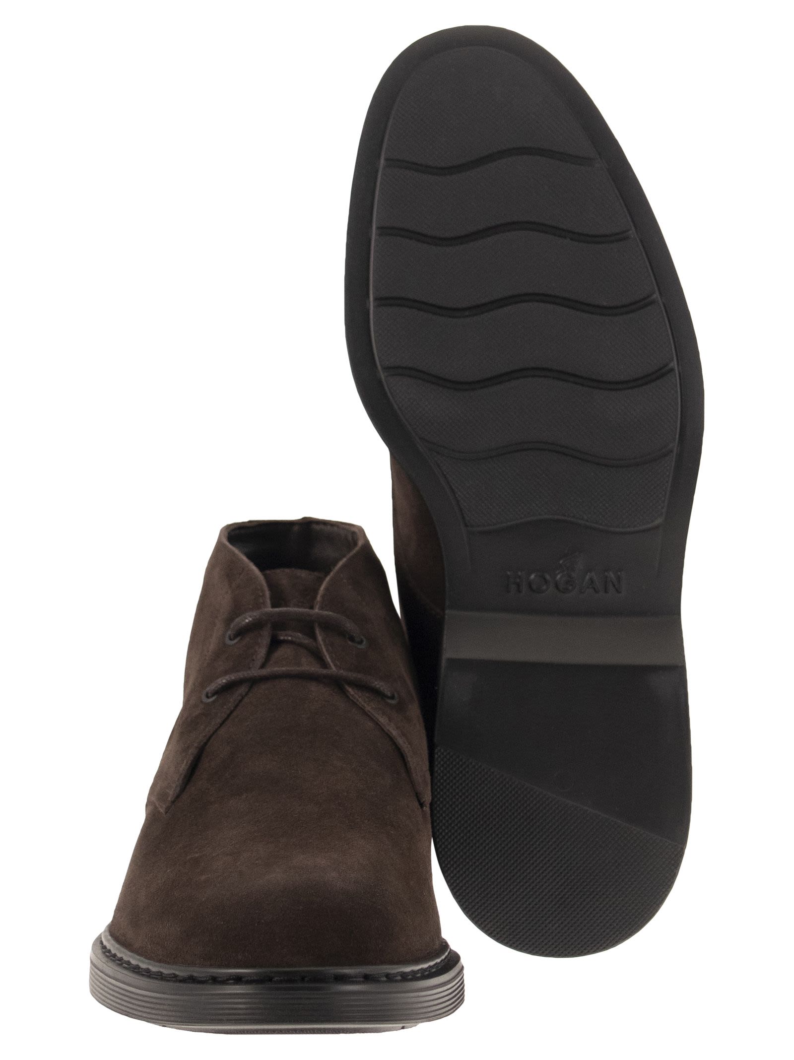 Una fusione di stile classico e gusto casual, questo uomos L'avvio della caviglia in pelle scamosciata è caratterizzato da linee pulite e raffinate. Il design superiore essenziale è arricchito dal monogramma di Hogan in rilievo. Il taglio obliquo del tallone conferisce riconoscimento e movimento alla suola di gomma, mentre l'intersuola in memory foam garantisce comfort e prestazioni. - Made in Italia - Upperio in pelle scamosciata - monogramma hogan in rilievo - Welt cuciti - pista in memory foam da 8 mm - suola in gomma - tastiera in tessuto ID designer: HXM5760EP70HG0S807