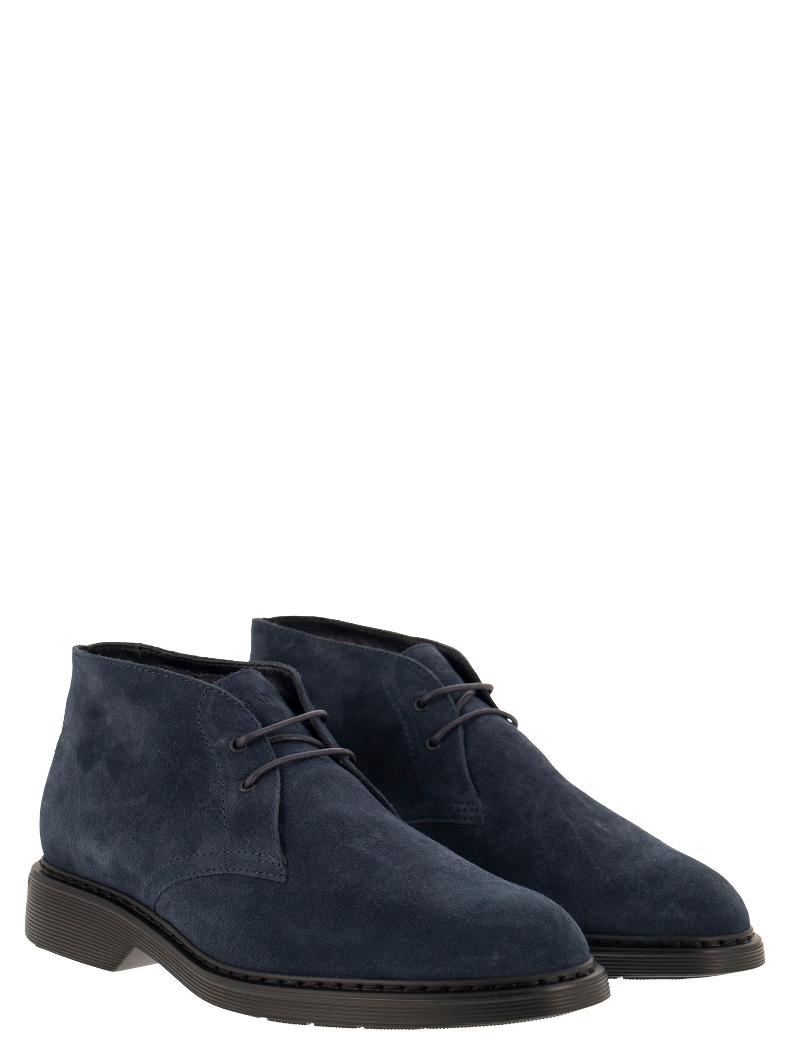 Una fusione di stile classico e gusto casual, questo uomos L'avvio della caviglia in pelle scamosciata è caratterizzato da linee pulite e raffinate. Il design superiore essenziale è arricchito dal monogramma di Hogan in rilievo. Il taglio obliquo del tallone conferisce riconoscimento e movimento alla suola di gomma, mentre l'intersuola in memory foam garantisce comfort e prestazioni. - Monogramma Hogan impresso - Welt cuciti - ID progettista a pista da 8 mm in memory foam: HXM5760EP70HG0U828