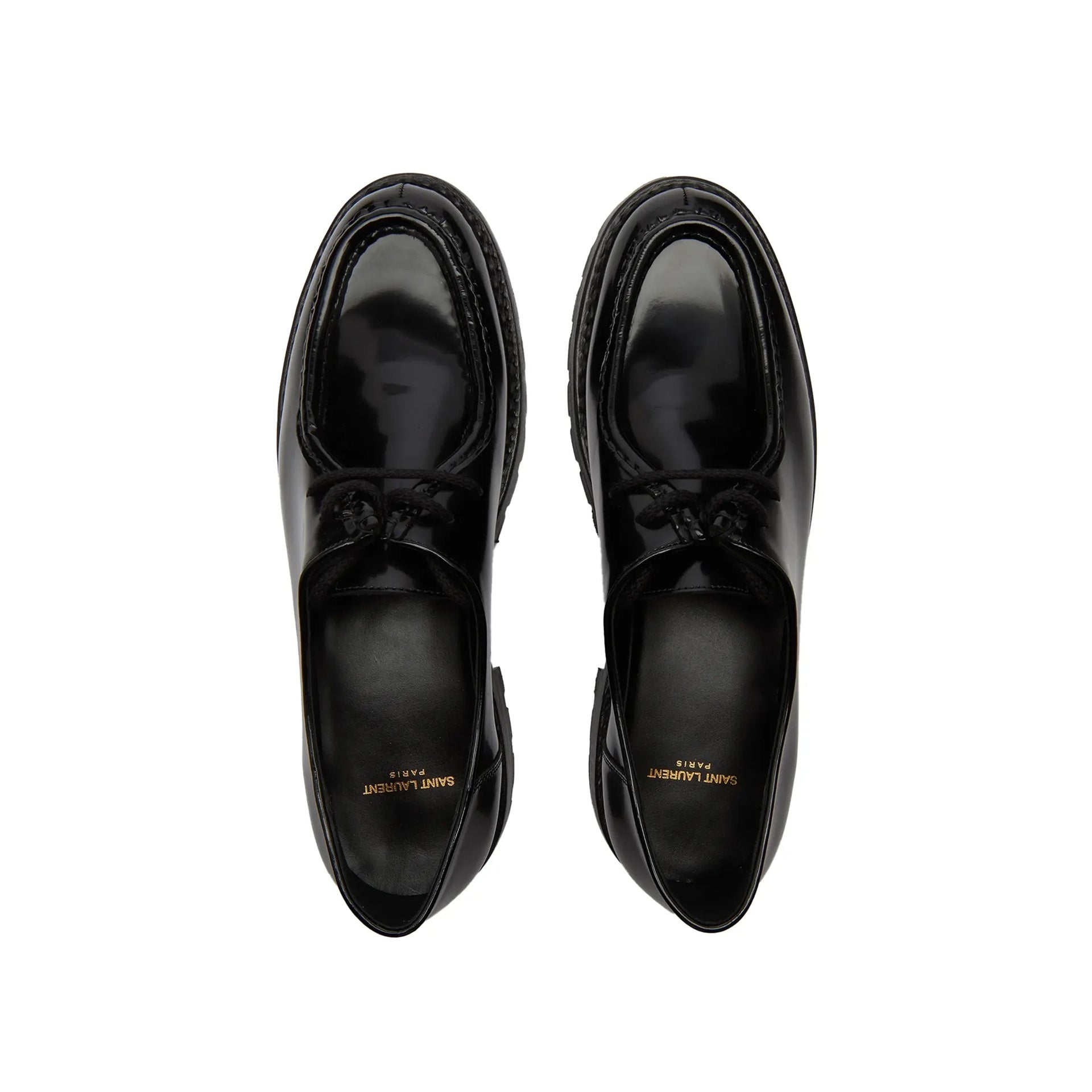 - Composizione: cuoio a vitello 100% - interno: pelle - insale: cuoio - suola: gomma - punta rotonda - effetto di brevetto - chiusura del pizzo anteriore - Made in Italia -