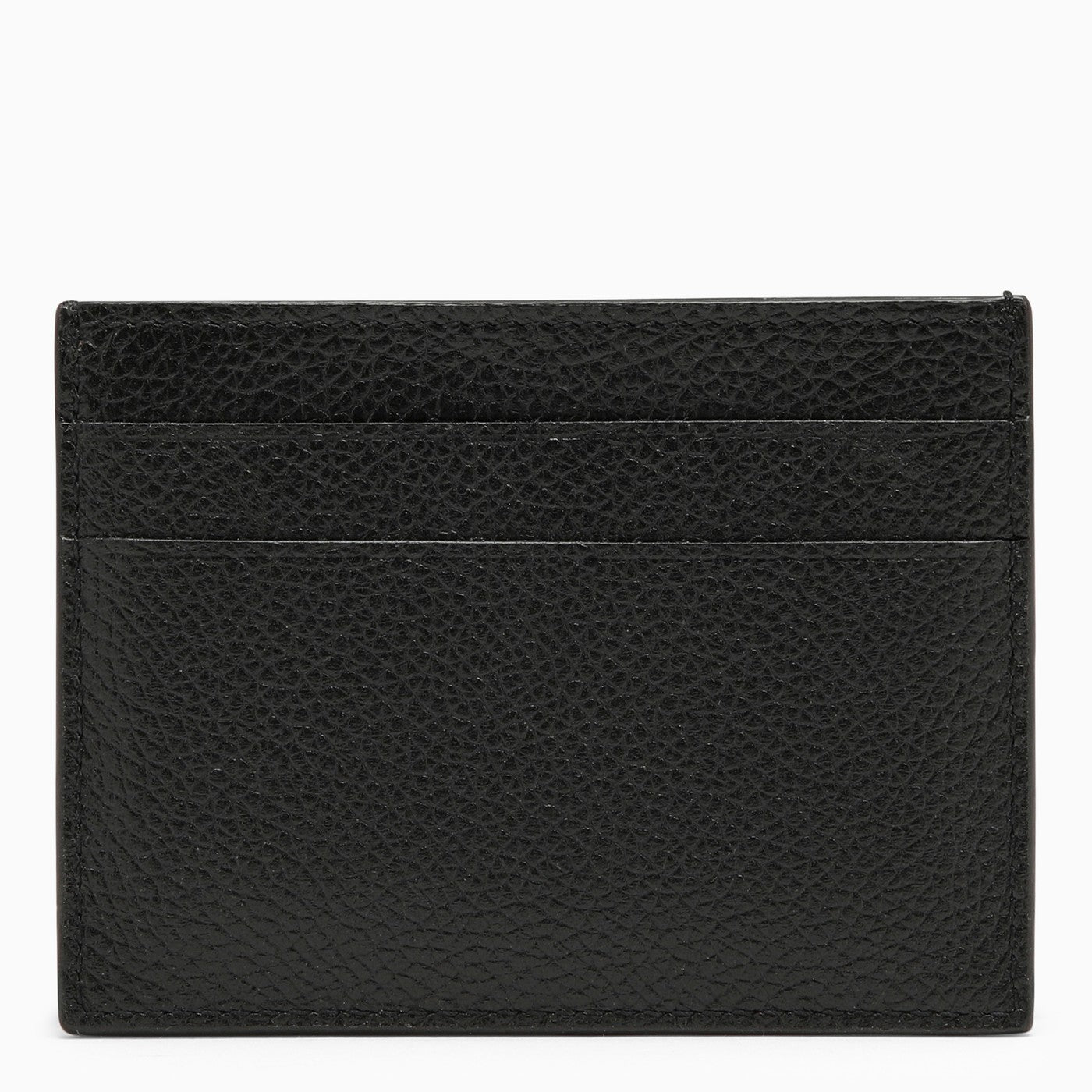Titolare della carta di Balenciaga in cuoio a grana nera, con un compartimento centrale, sei tasche slot per carte di credito e stampa a logo contrastante sul davanti.