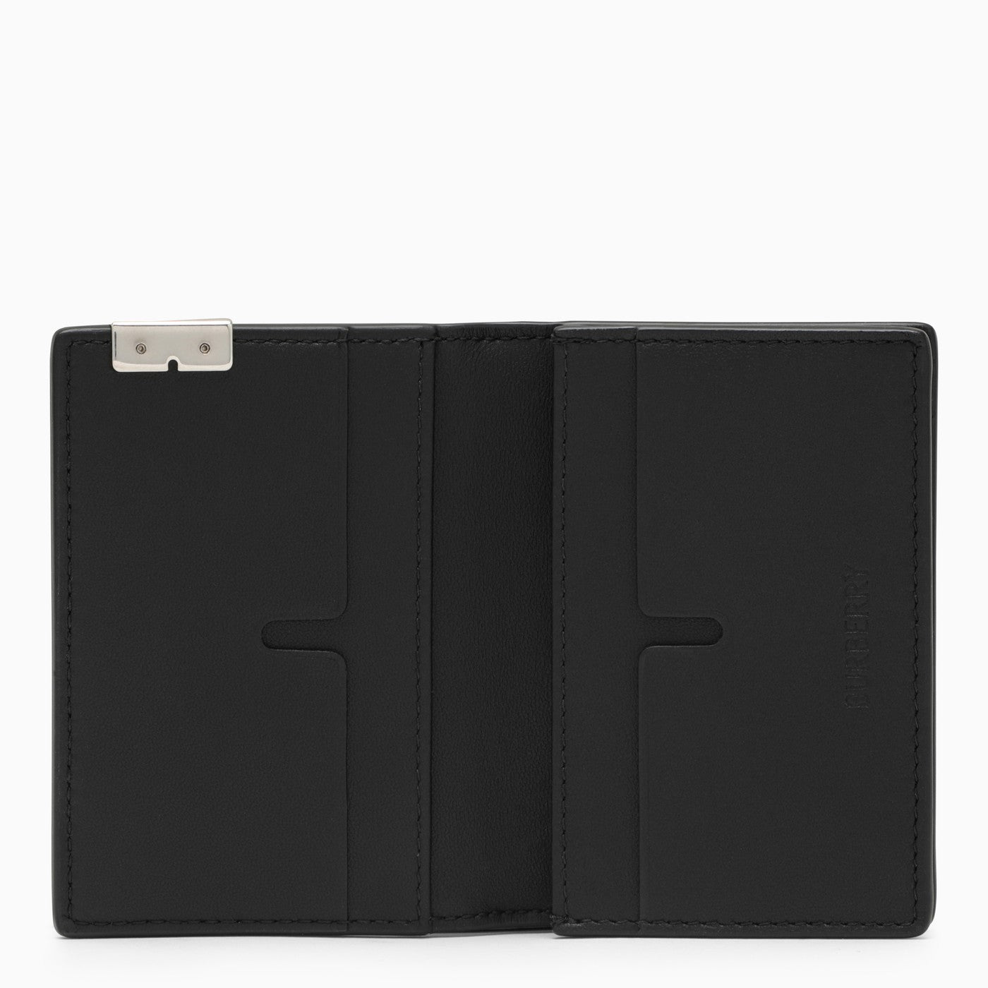 La custodia per libri in pelle nera di Burberry è dotata di slot a quattro carte, tasca per la tasca e dettagli in metallo.